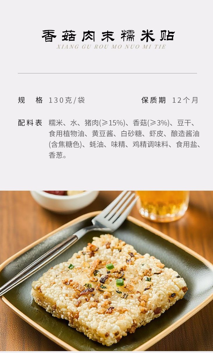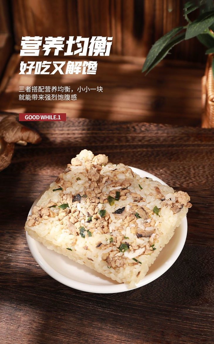 营养均衡,好吃又解馋 糯米提供充足的碳水化合物 肉末补充蛋白质,香菇富含 多种微量元素,三者搭配 营养均衡,小小一块就能带来 强烈饱腹感,好吃又管饱