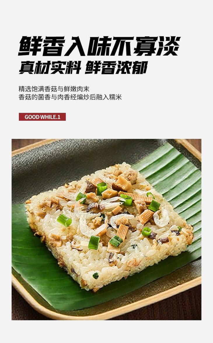 真材实料,鲜香浓郁 精选饱满香菇与鲜嫩肉末 香菇的菌香与肉香经煸炒后 融入糯米,每一口都能吃到 实实在在的香菇丁与肉粒 口感丰富,鲜香入味不寡淡