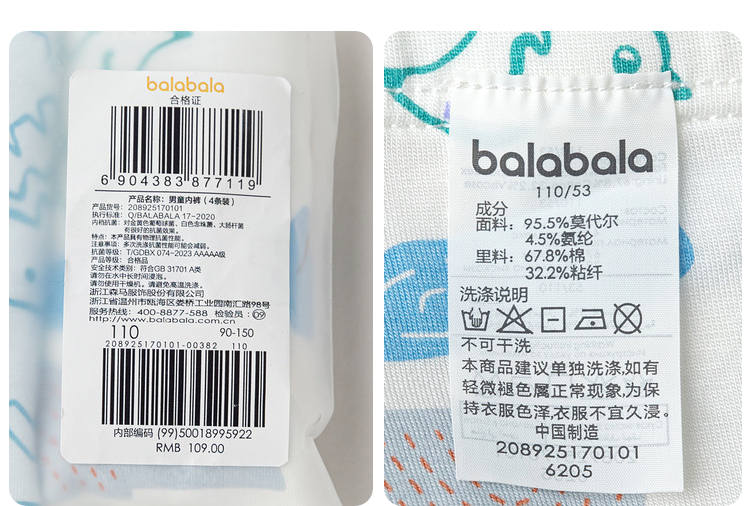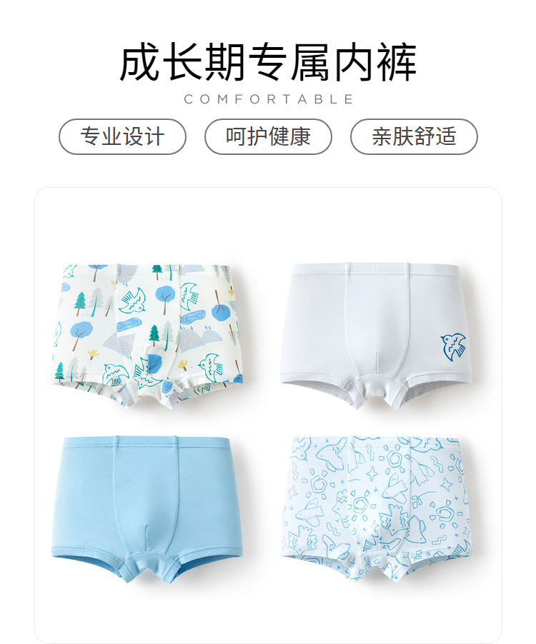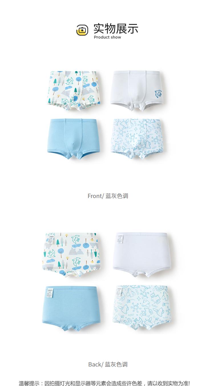 巴拉巴拉儿童内裤莫代尔a类男童四角短裤小童宝宝萌平角裤四条装