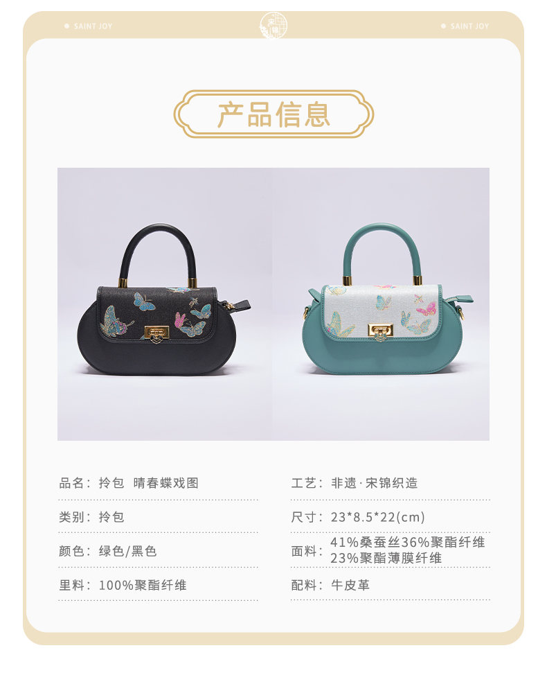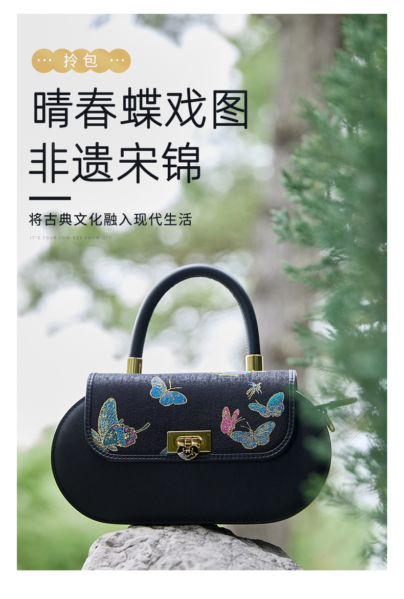 新中式国风宋锦腋下包 手提包 晴春蝶戏拎包BWS25A0401