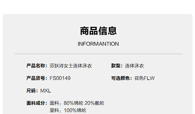 2F【Fandecie芬狄诗】简洁圆领舒适女士连体泳衣FS00149
