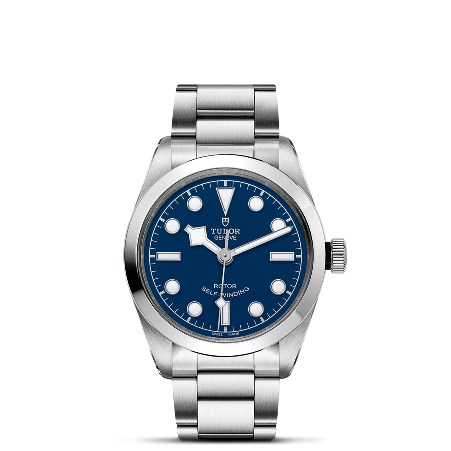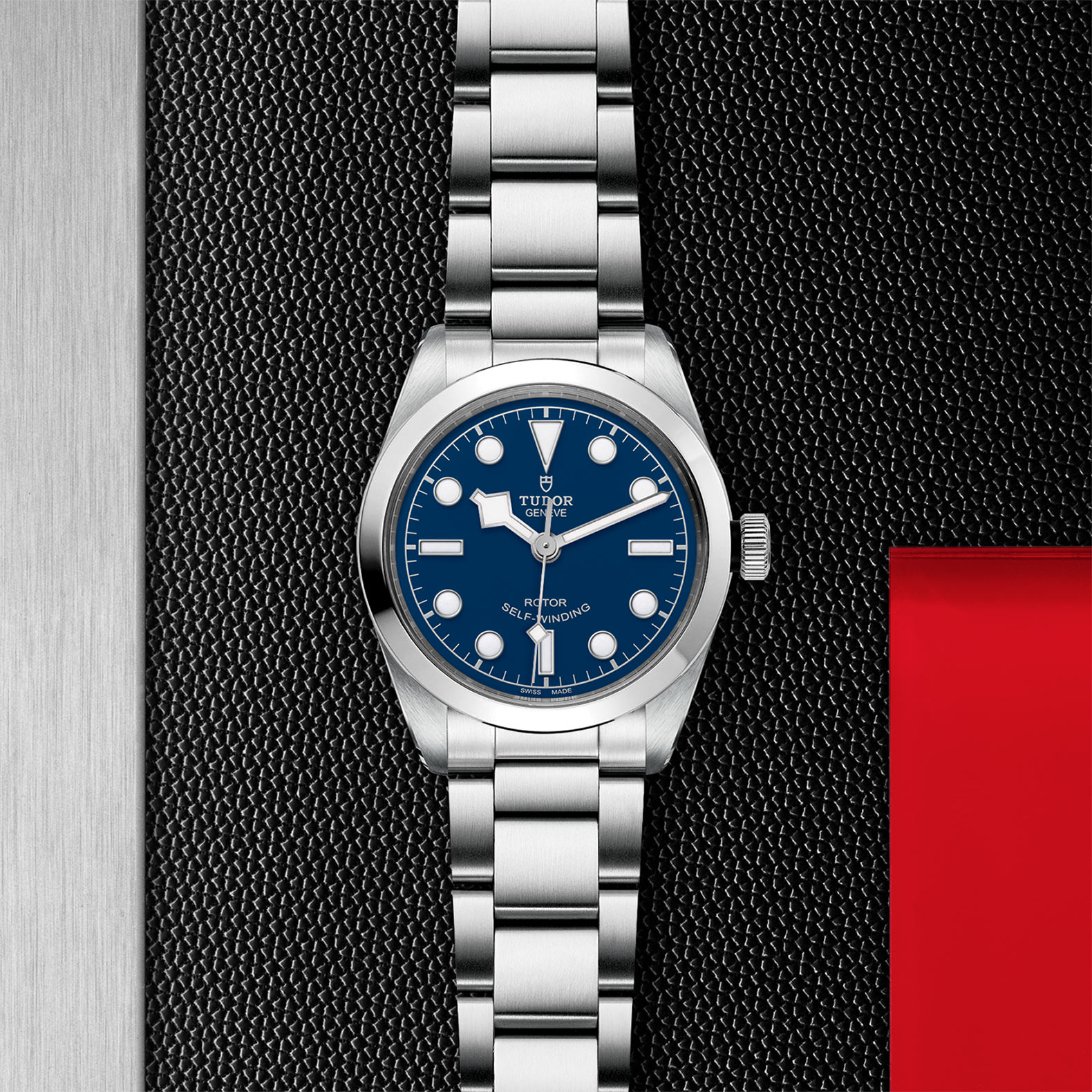不锈钢旋入式上链表冠,饰以浮雕帝舵表玫瑰标志,配黑色阳极氧化铝上链表冠轴