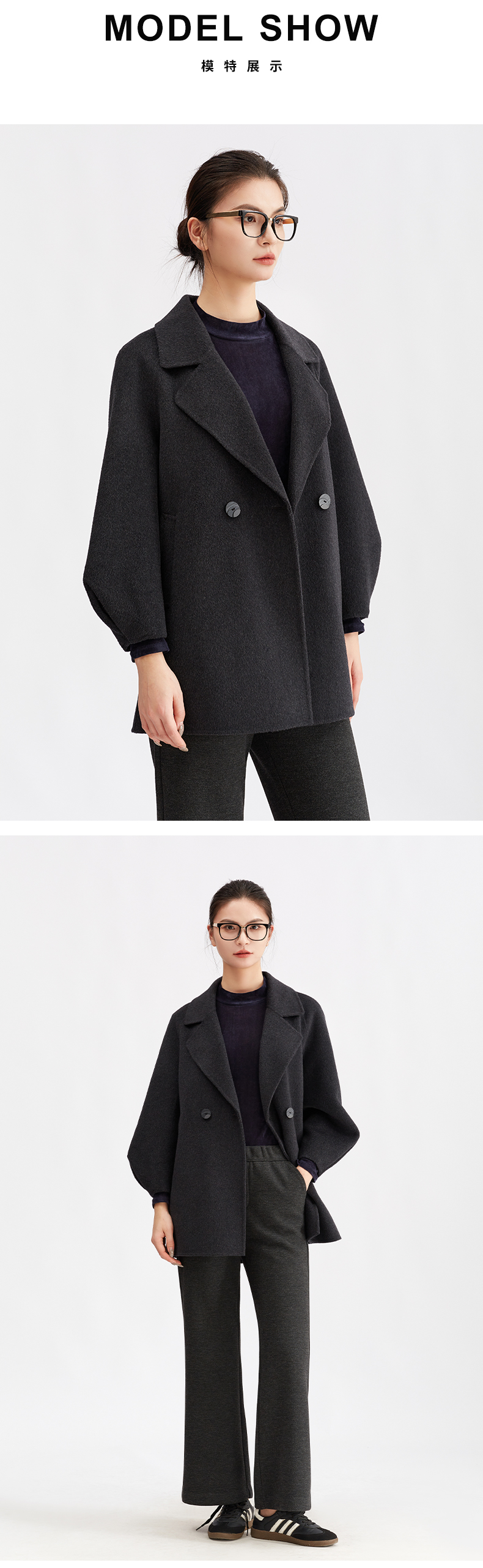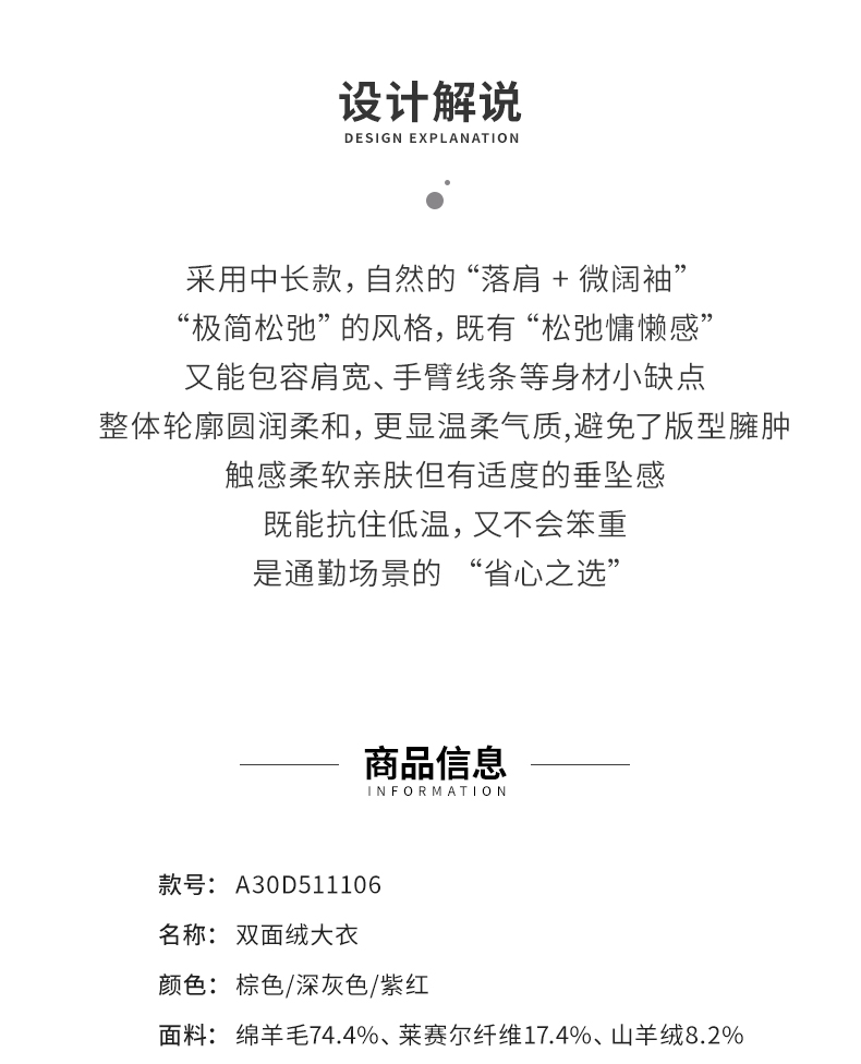 【商场同款】阿菁娜冬季新款极简松弛风外套落肩微阔袖包容身形柔坠感抗寒A30D511106