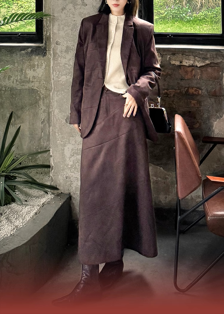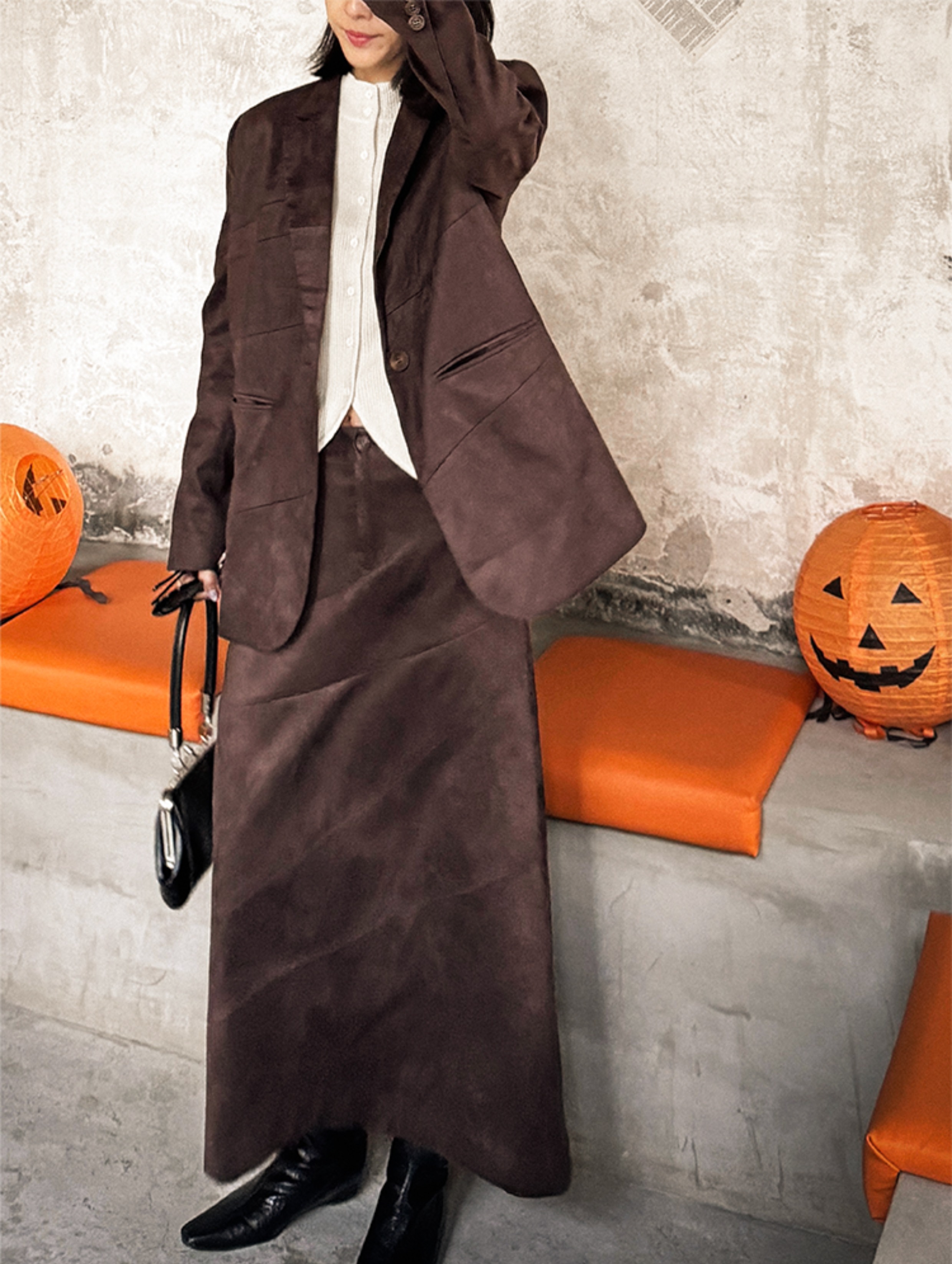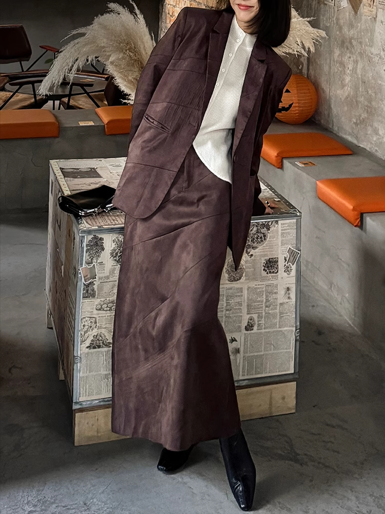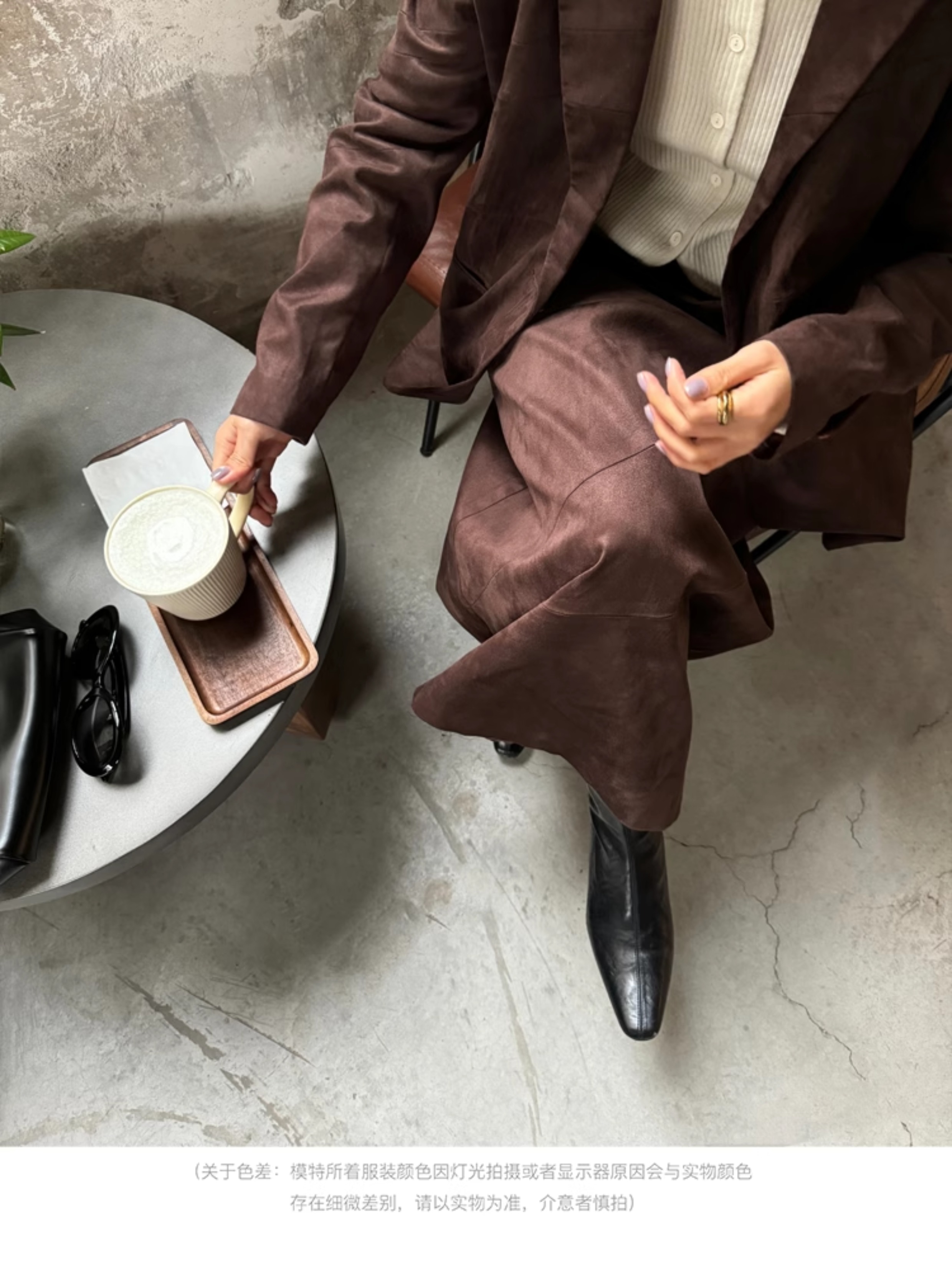LIYIHAN 24冬新款麂皮面料不规则长半裙分割直筒开叉小A高级感