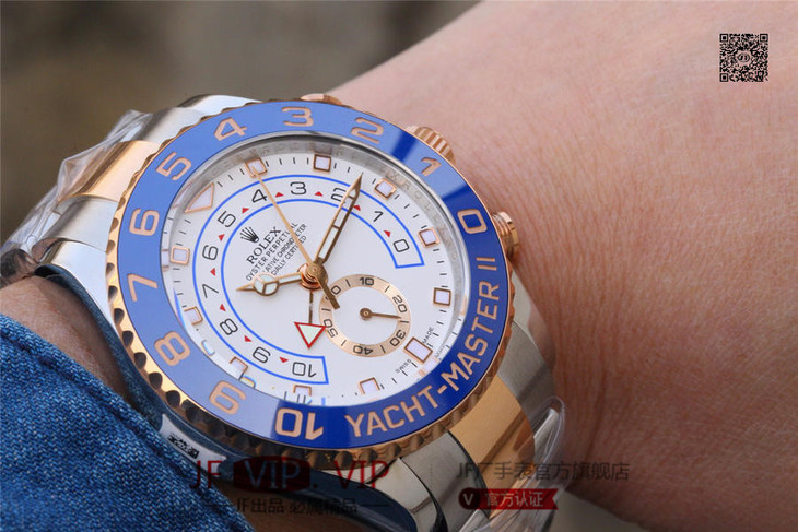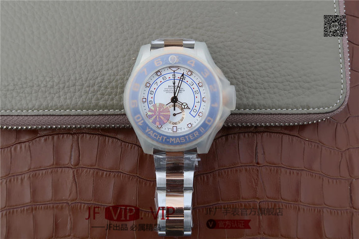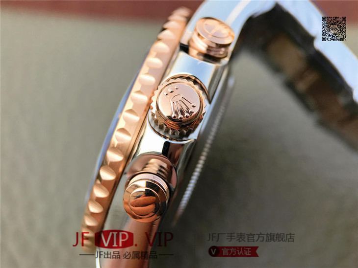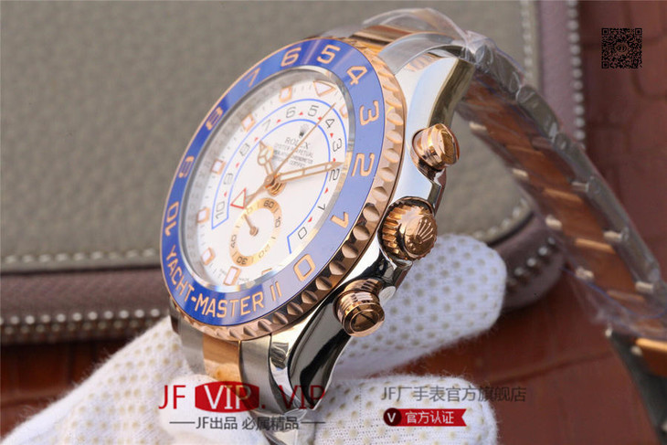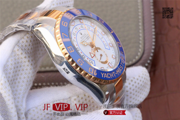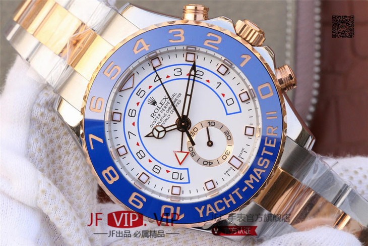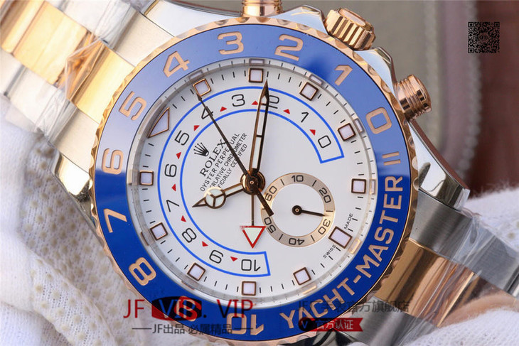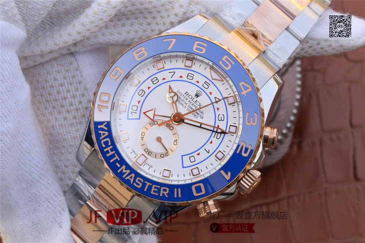 JF劳力士游艇名仕型116681奔驰针款。 7750自动机械计时机芯,44毫米,男士 材料: 18k玫瑰金/不锈钢;18K玫瑰金劳力士Ring Command旋转外圈(双向90°旋转,与机芯互动),配蓝色Cerachrom陶质字圈,金涂层数字