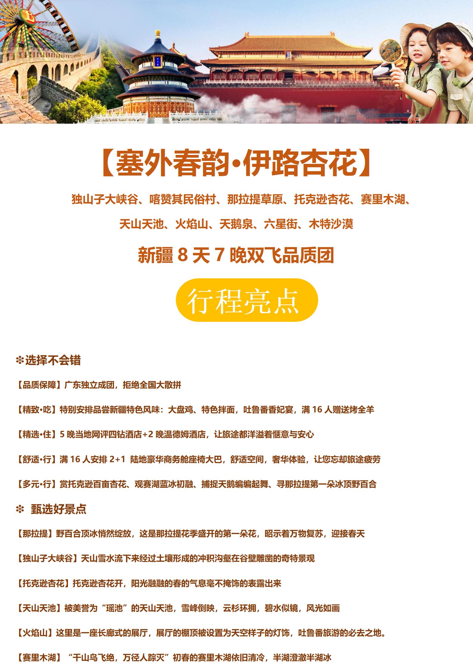 【塞外春韵·伊路杏花】新疆8天7晚双飞品质团