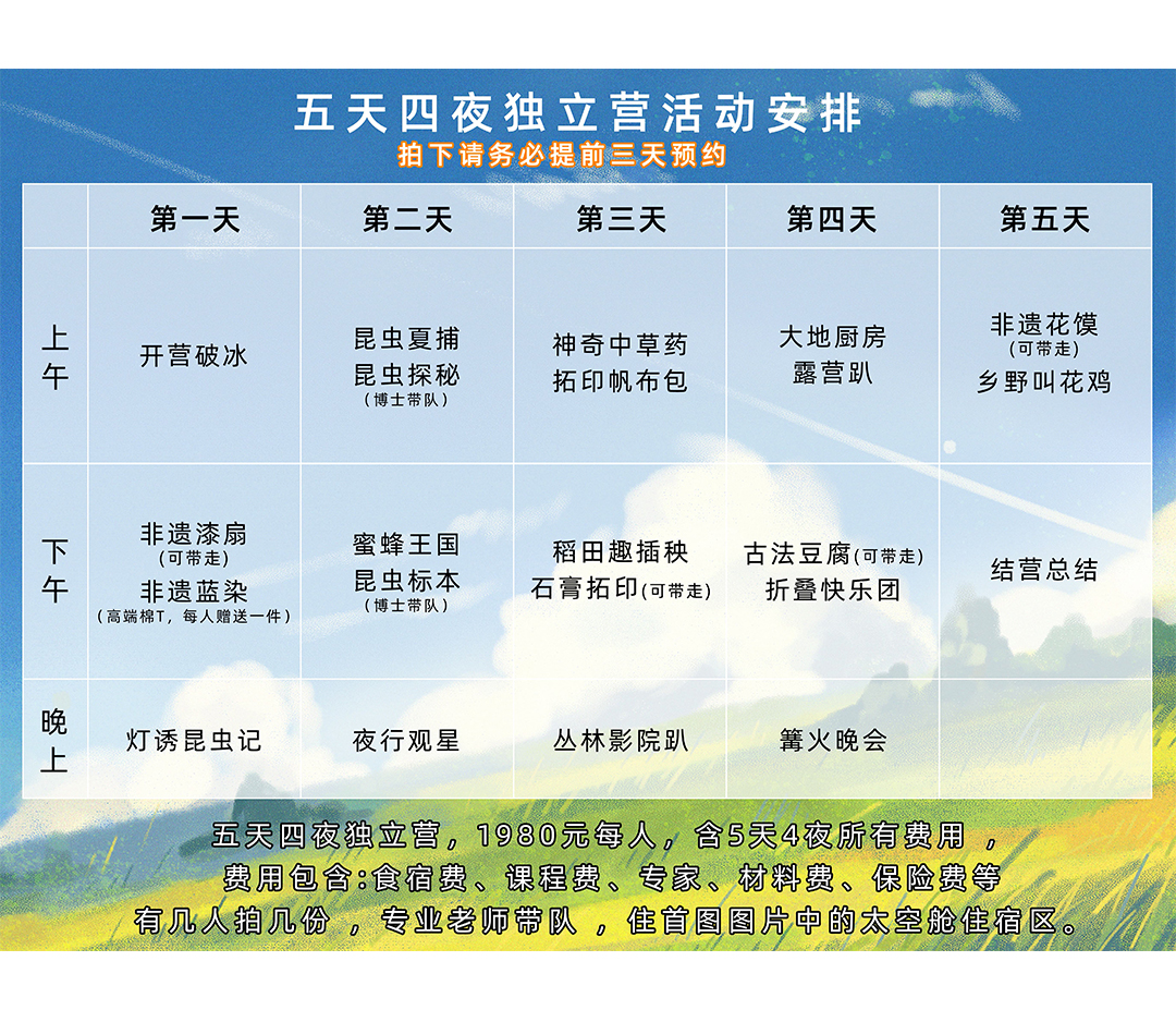 5天4夜独立营 | 营地专车接送,保定每日发车,外地可接站 专业老师带队 生活老师全程陪同 探野自然 生活体验营