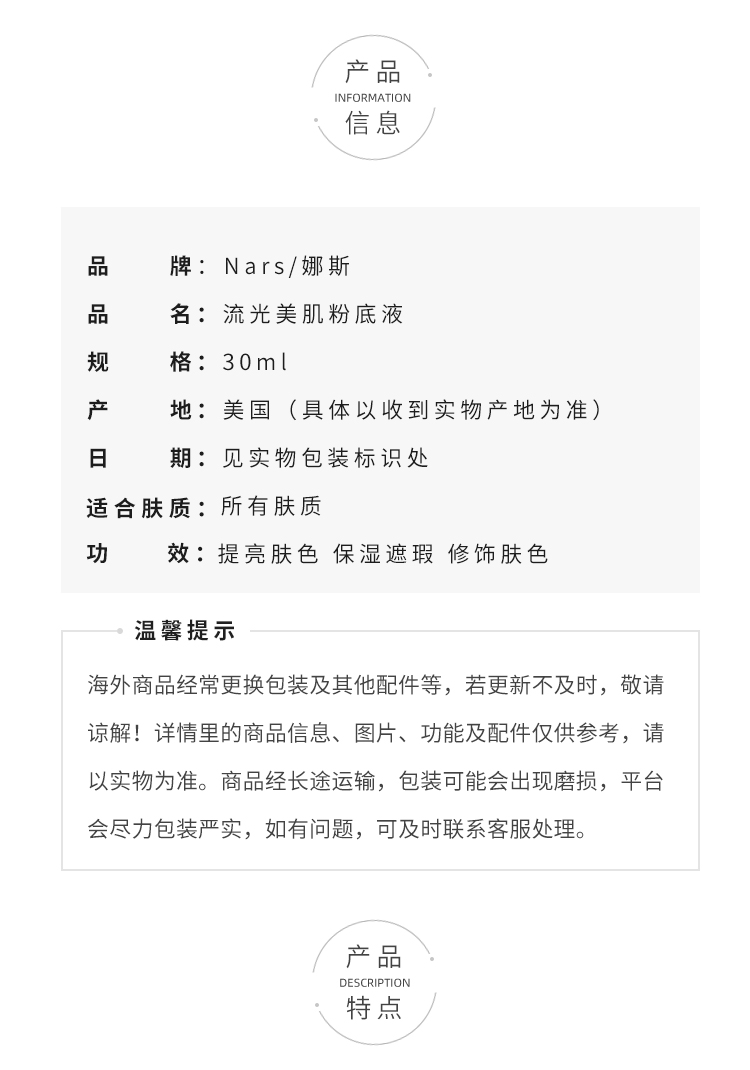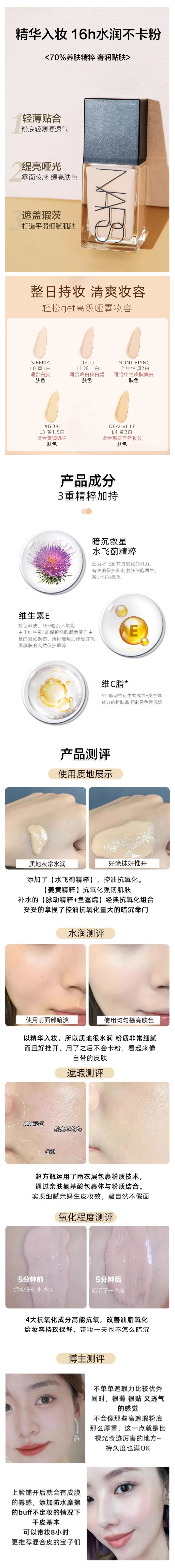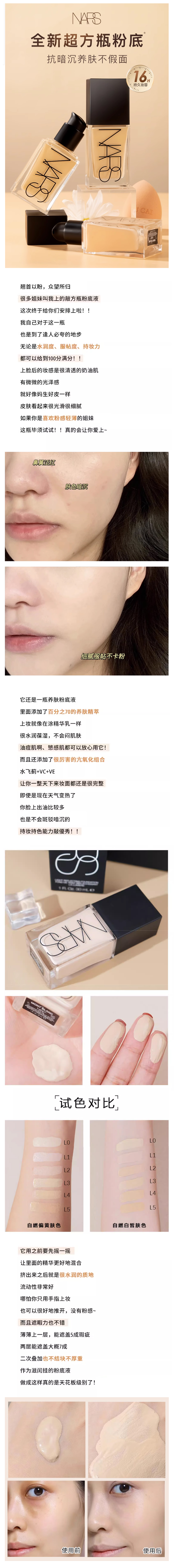 NARS 超方瓶流光美肌粉底液 养肤持妆 水润不暗沉【CDF】