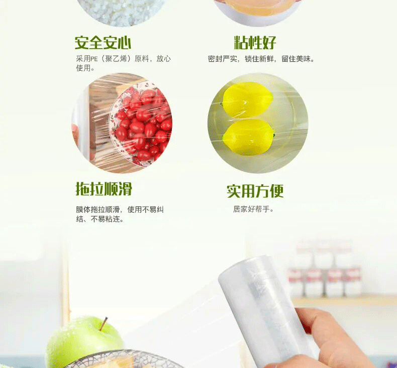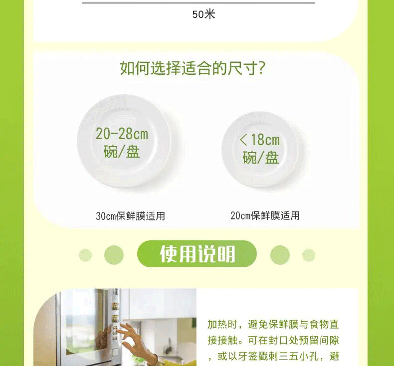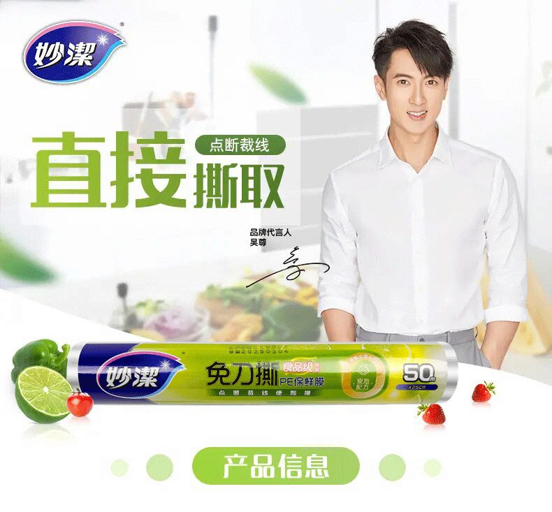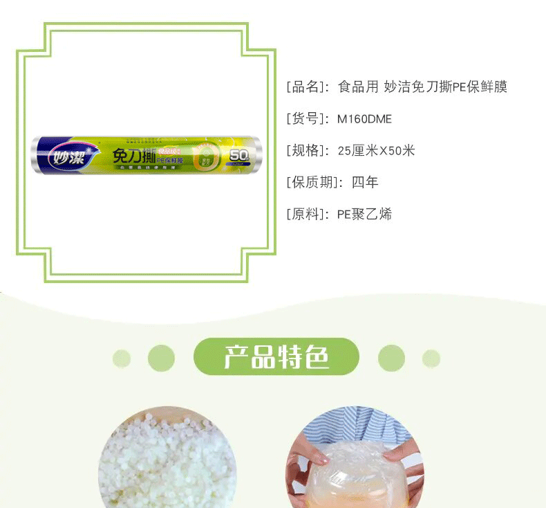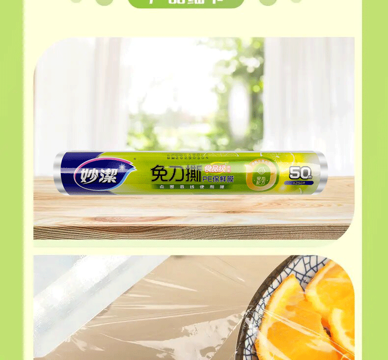 妙洁免刀撕PE保鲜膜50米中碗经济装25cm*50m