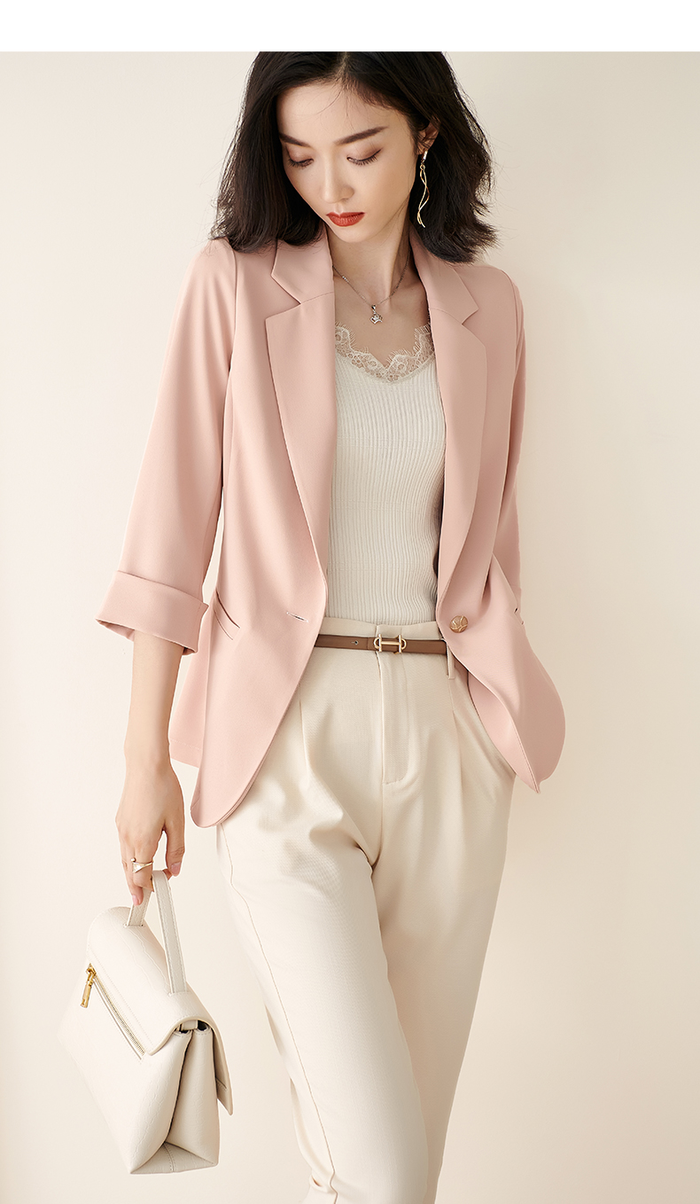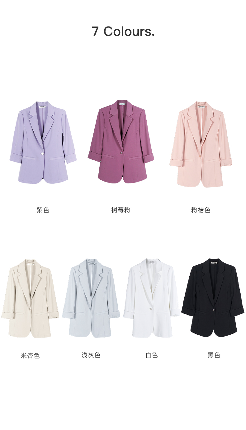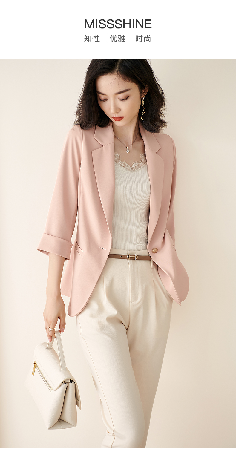 牛奶丝滑小西装 职场甜飒女神 7色可选 米思阳夏春知性优雅一粒扣修身显瘦七分袖西装外套女1838