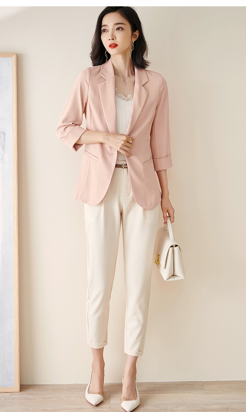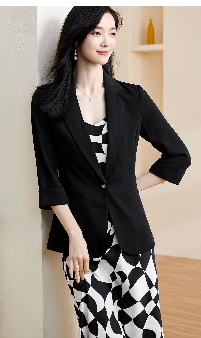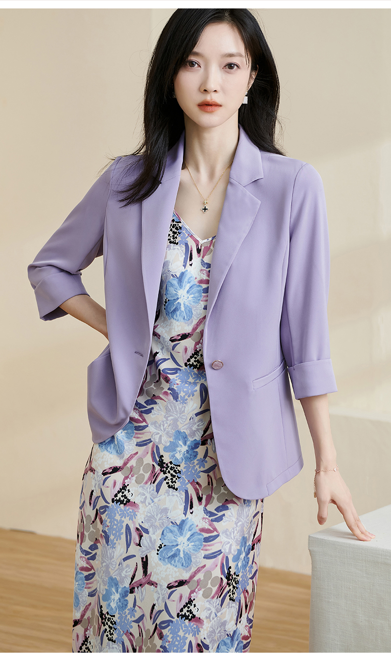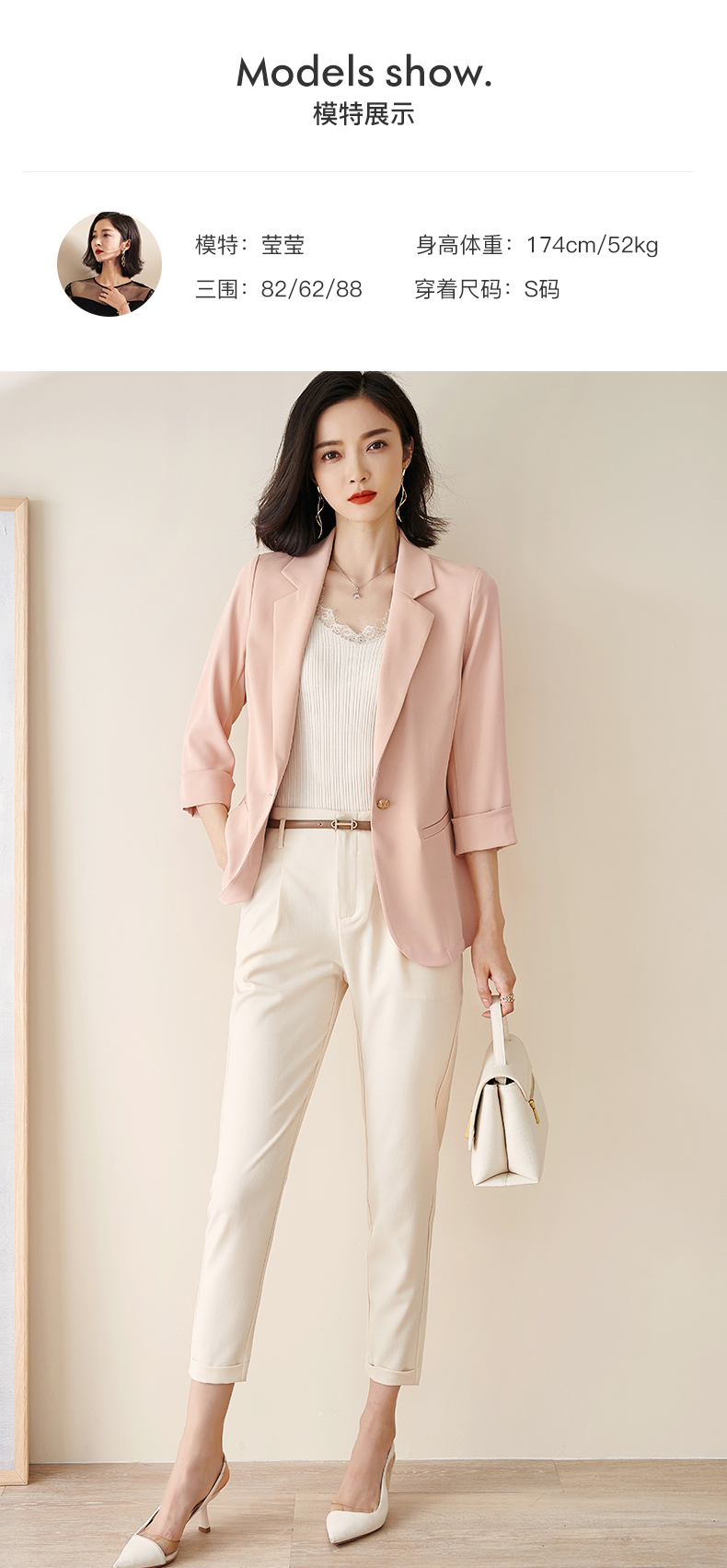 牛奶丝滑小西装 职场甜飒女神 7色可选 米思阳夏春知性优雅一粒扣修身显瘦七分袖西装外套女1838