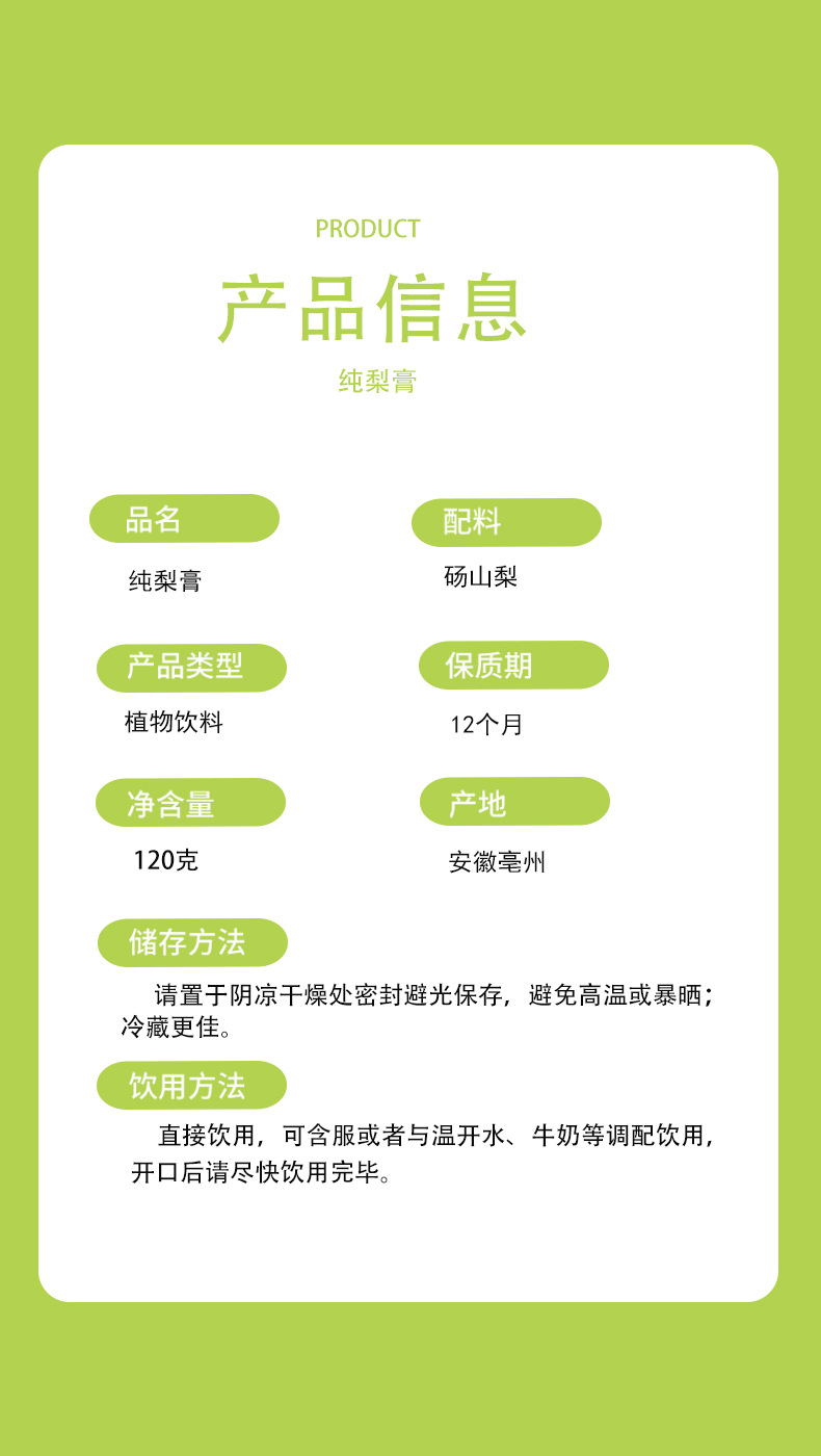 【果鲜味美!回甘持久】纯梨膏120g传统手工熬制纯梨膏泡水即食便捷独立小包装,不苦不焦