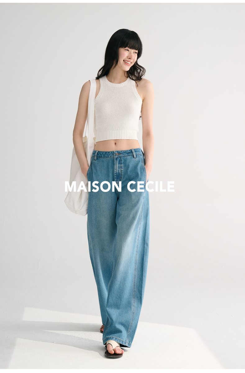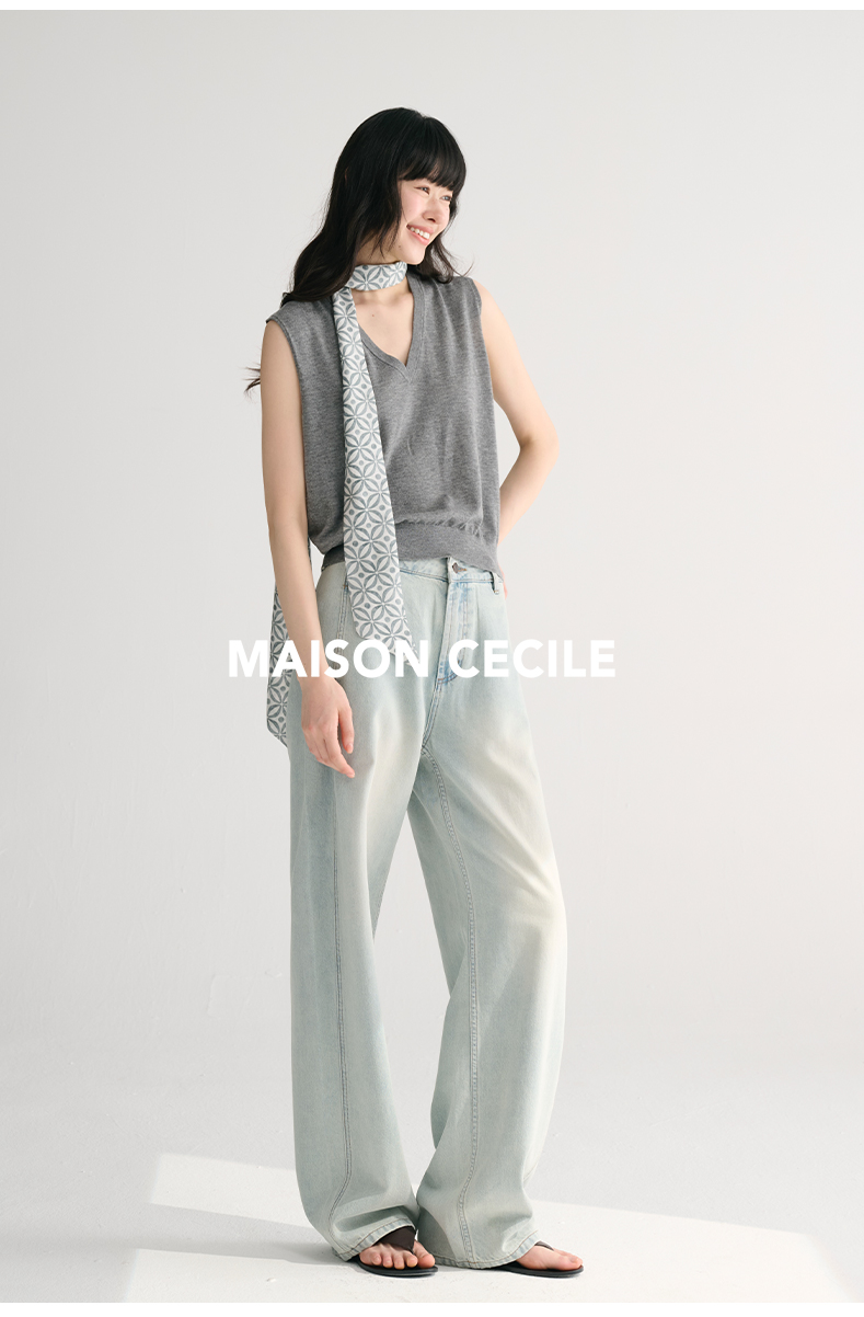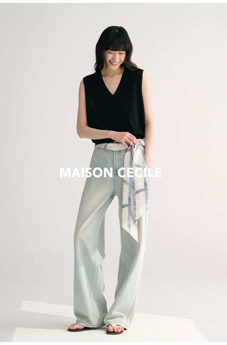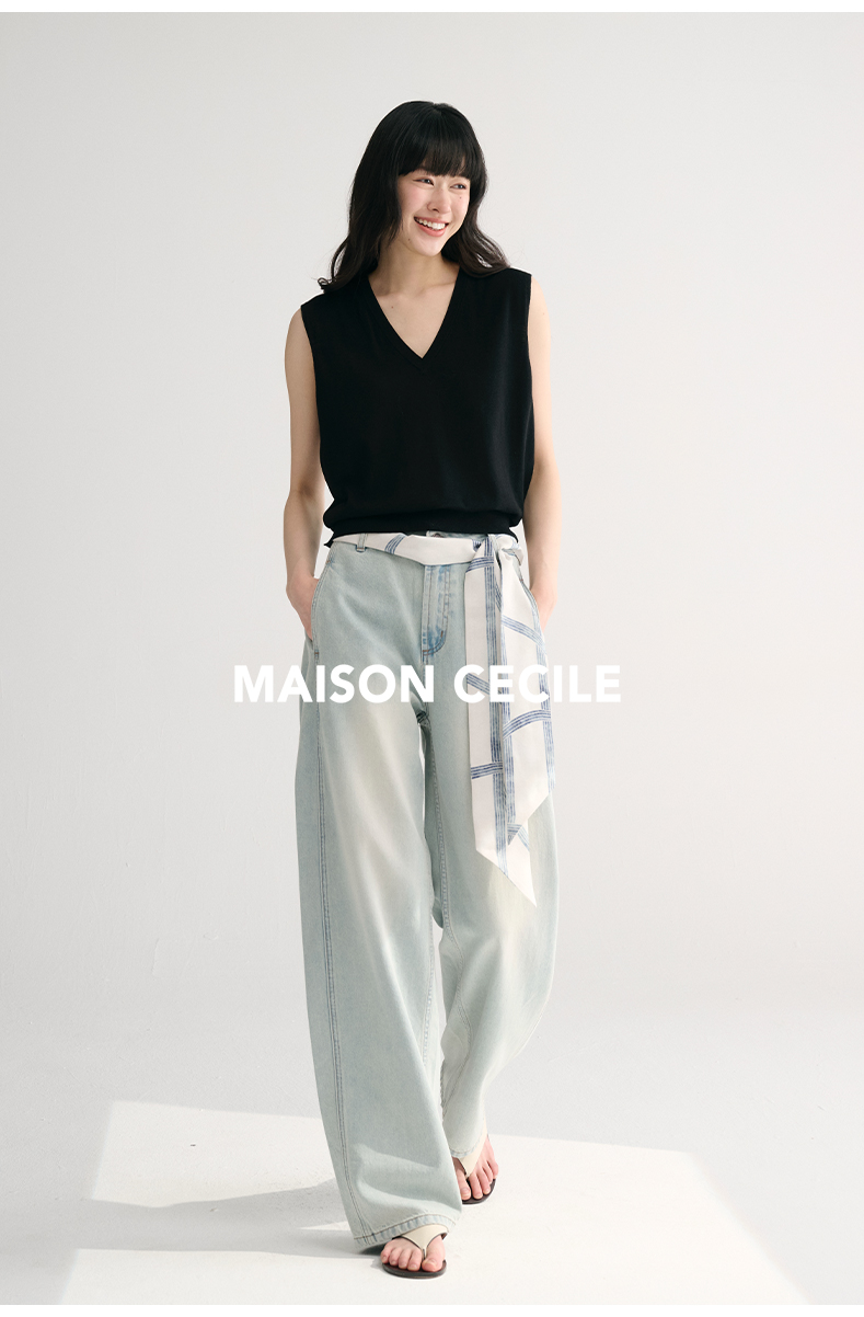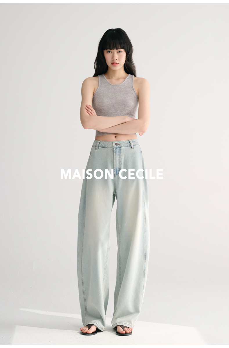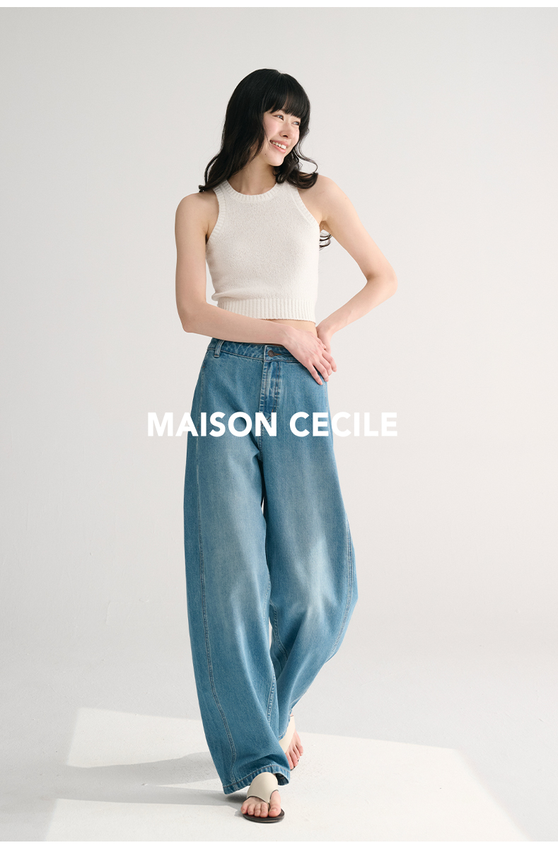 MAISON CECILE两色/夏日天丝版本轻薄垂感慵懒显瘦牛仔镰刀弧形裤