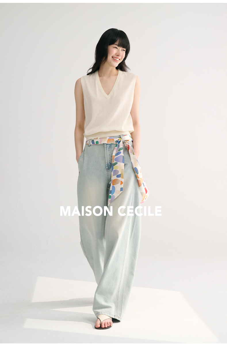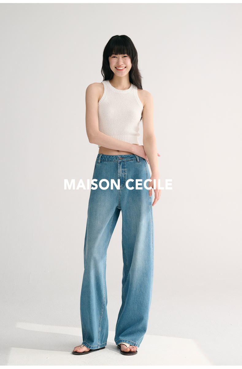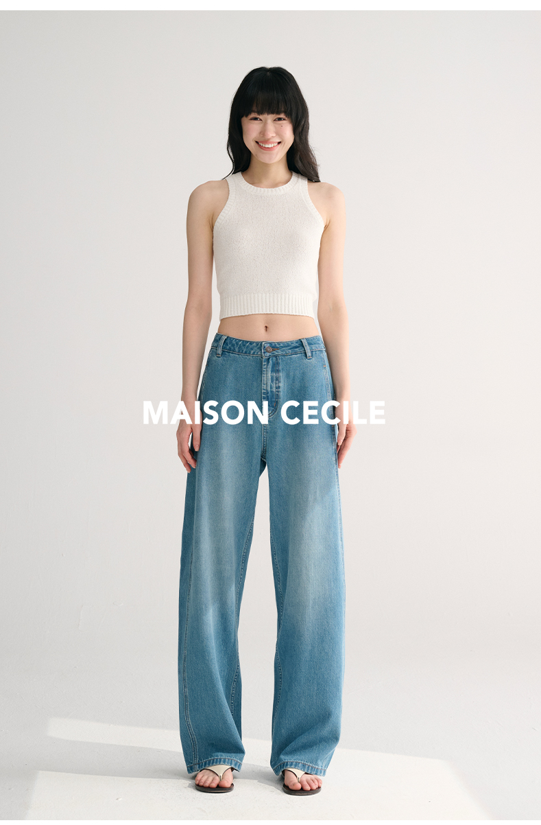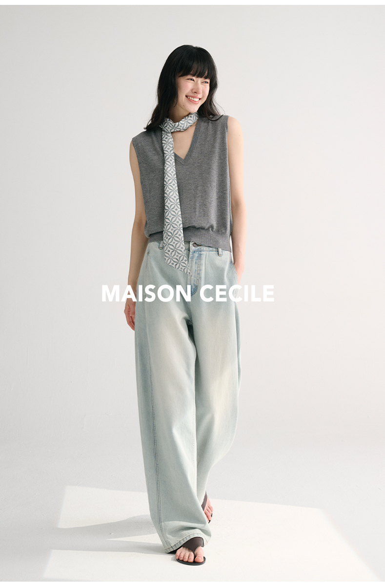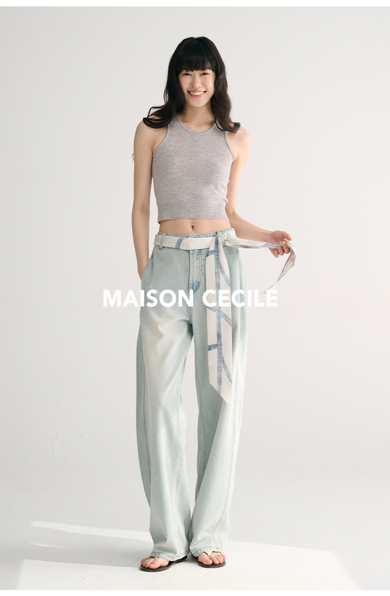 MAISON CECILE两色/夏日天丝版本轻薄垂感慵懒显瘦牛仔镰刀弧形裤