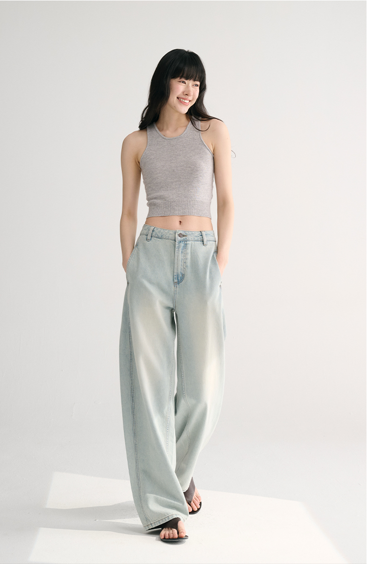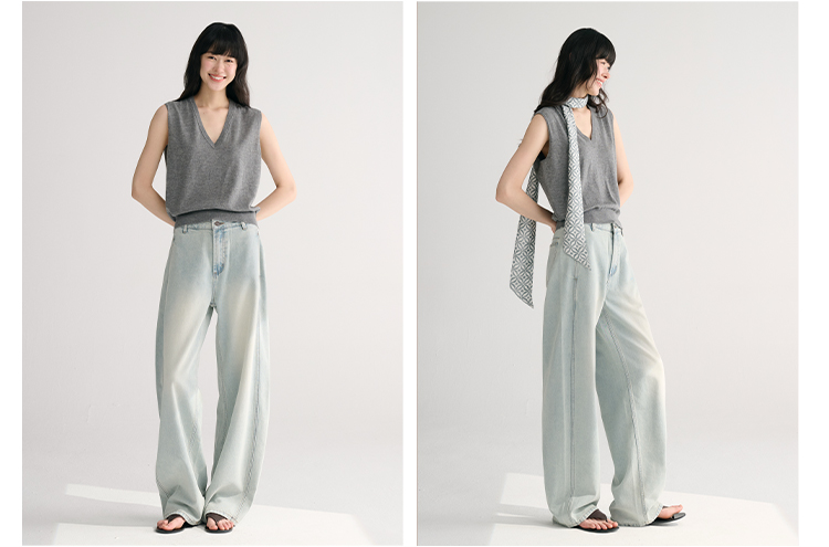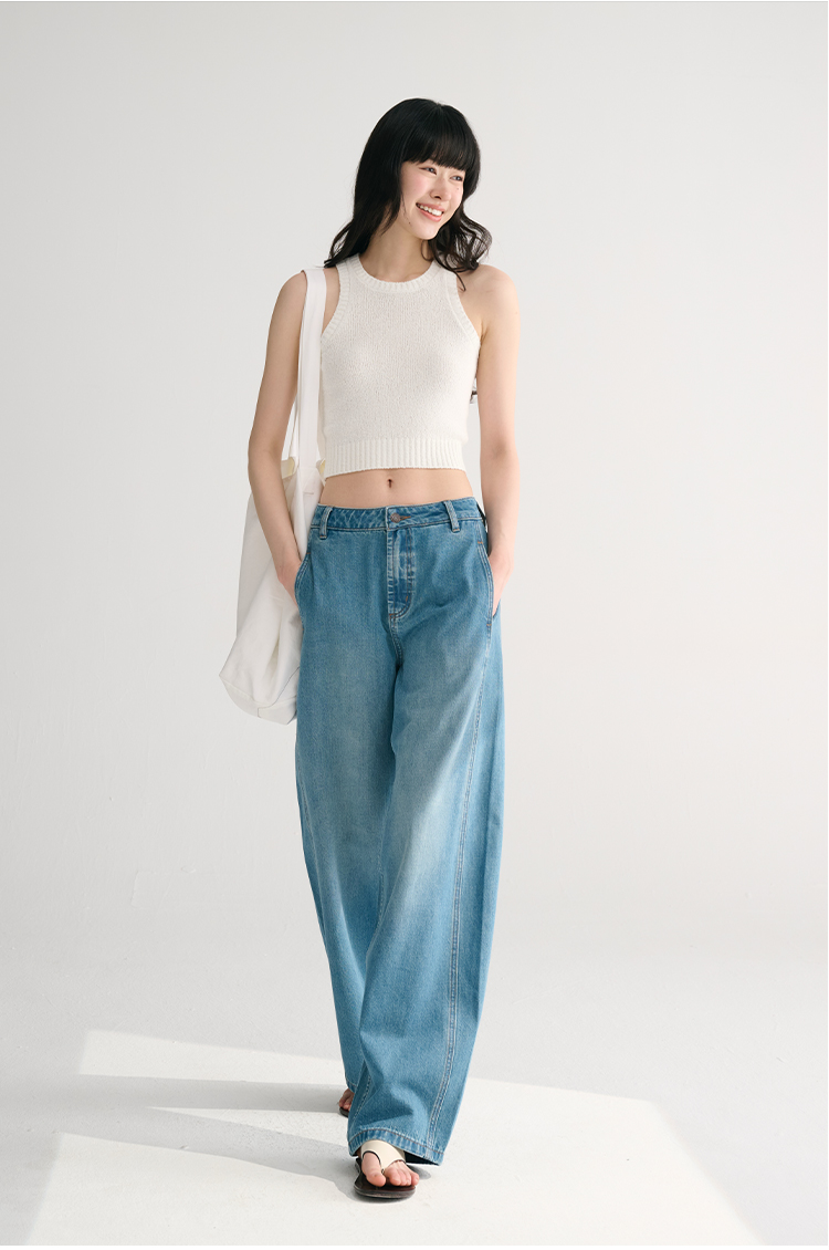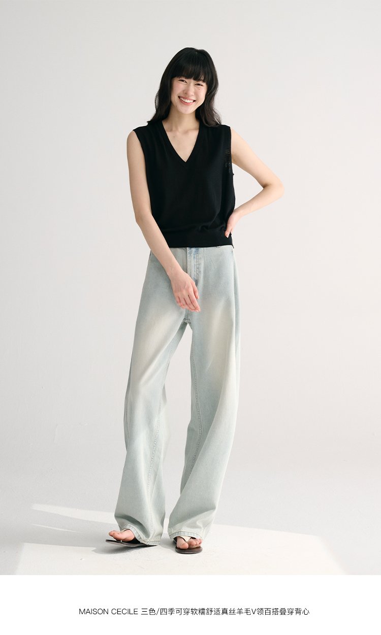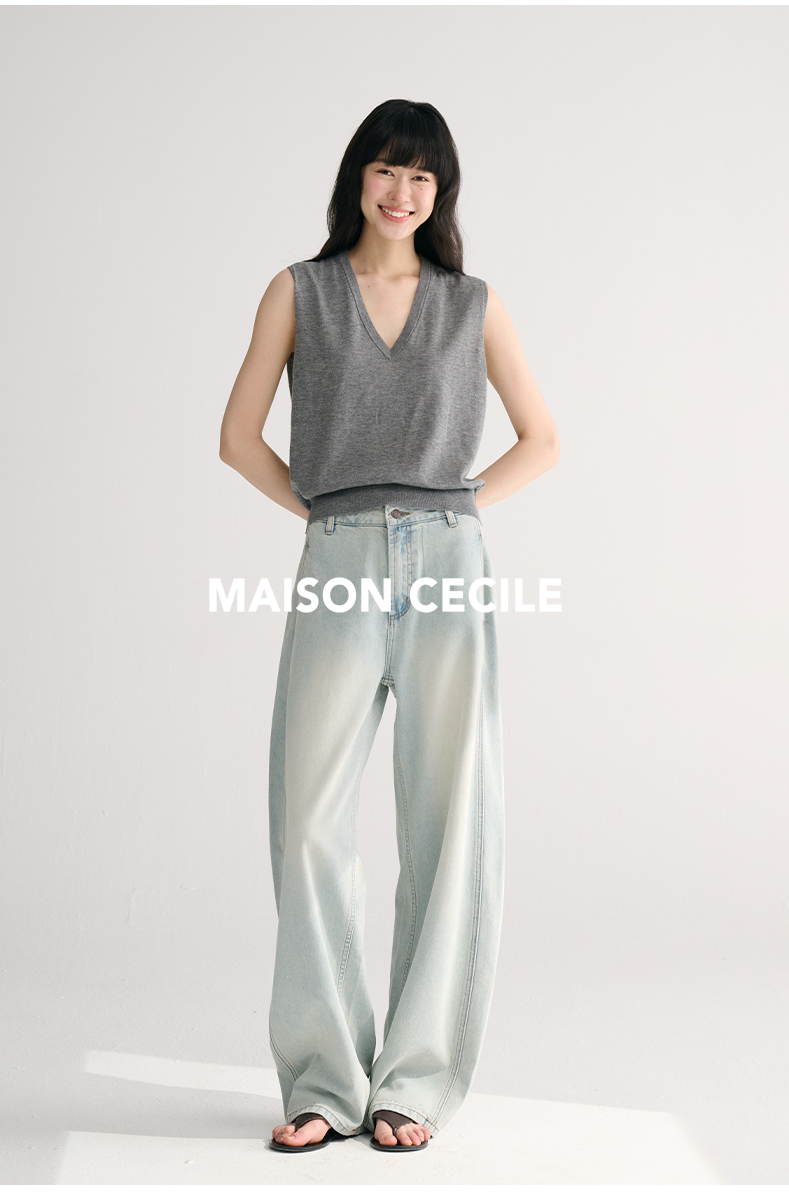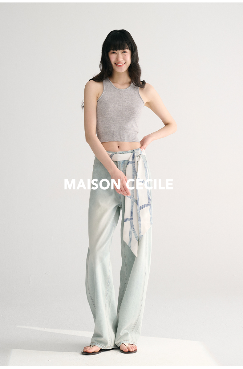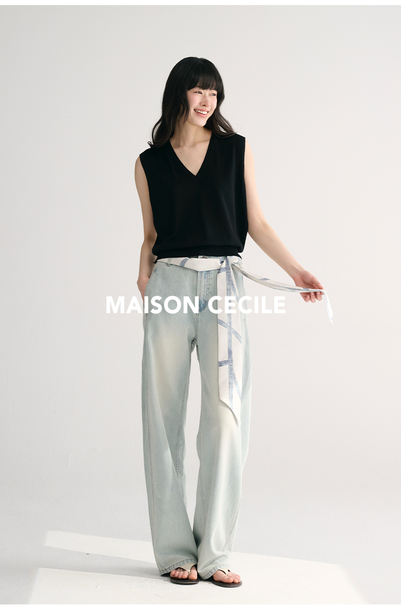 MAISON CECILE两色/夏日天丝版本轻薄垂感慵懒显瘦牛仔镰刀弧形裤