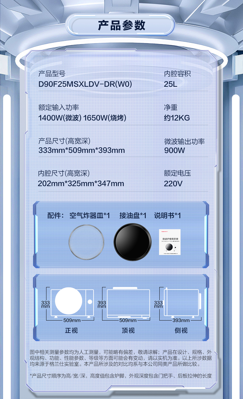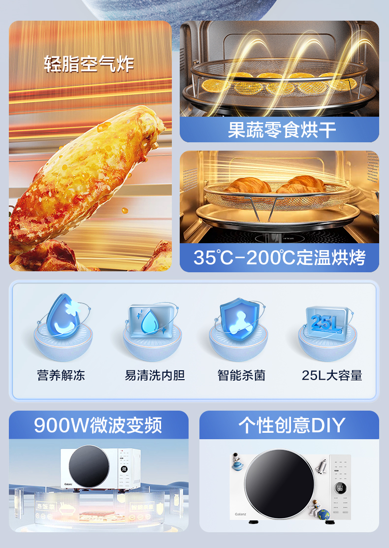 【会员日专用】格兰仕微波炉变频空气炸25升大容量 光波烧烤 家用 微波炉烤箱一体机光波炉 DR(W0)