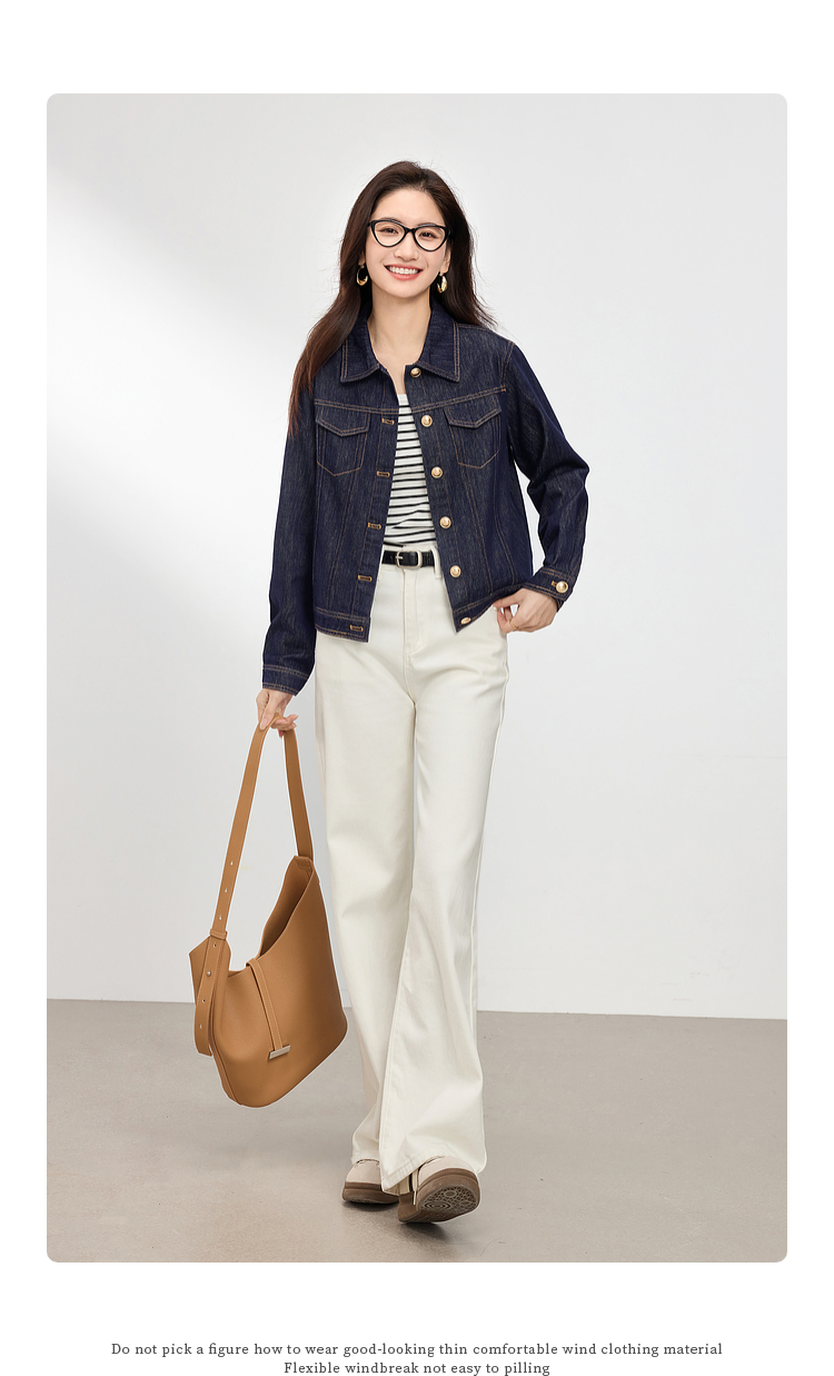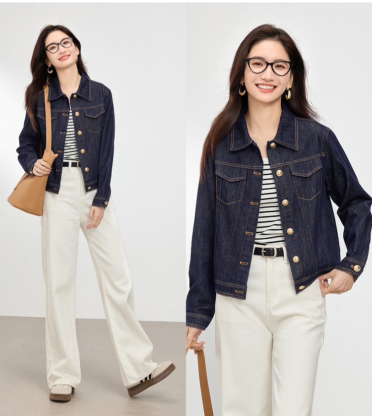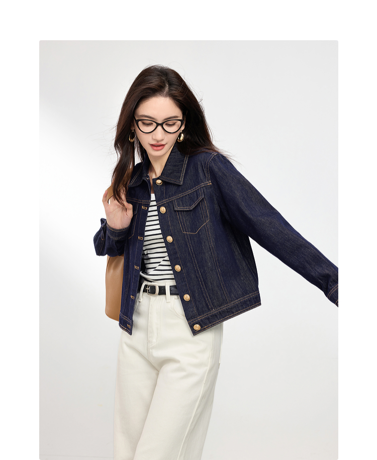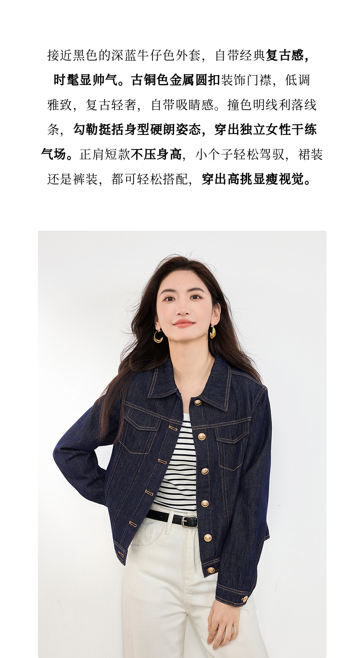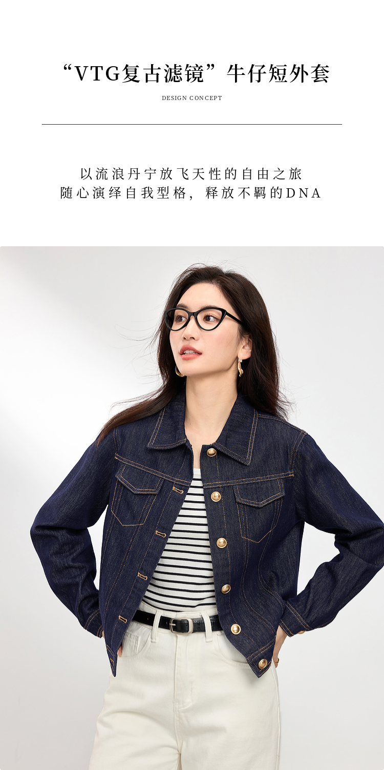 【1件75折】熙世界美式复古牛仔外套女2025春秋新款百搭休闲翻领夹克开衫上衣