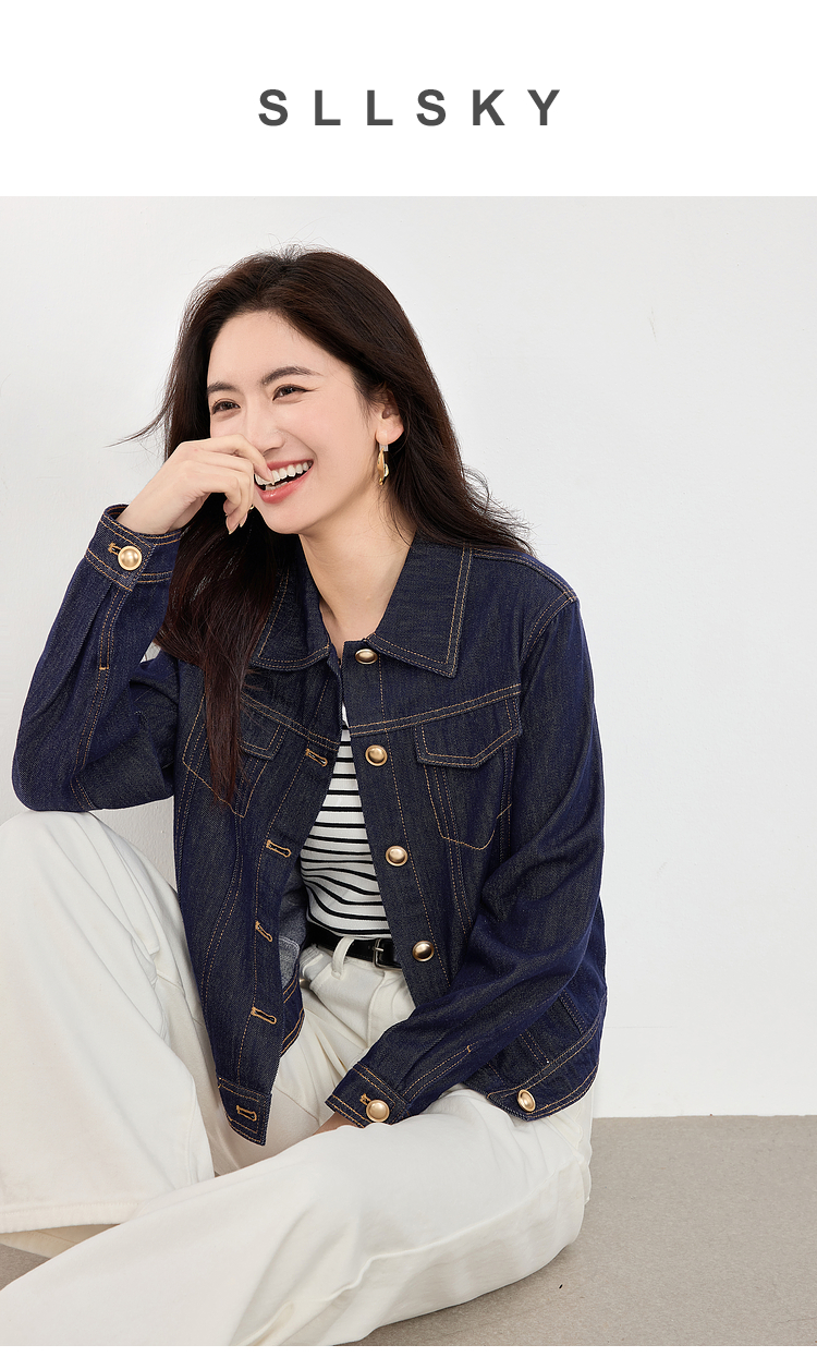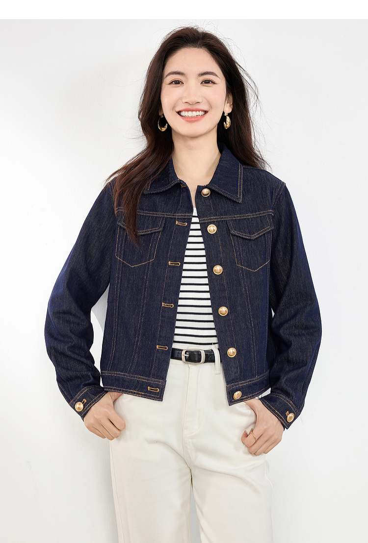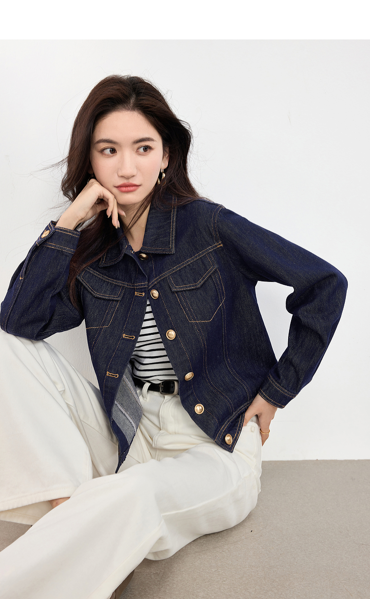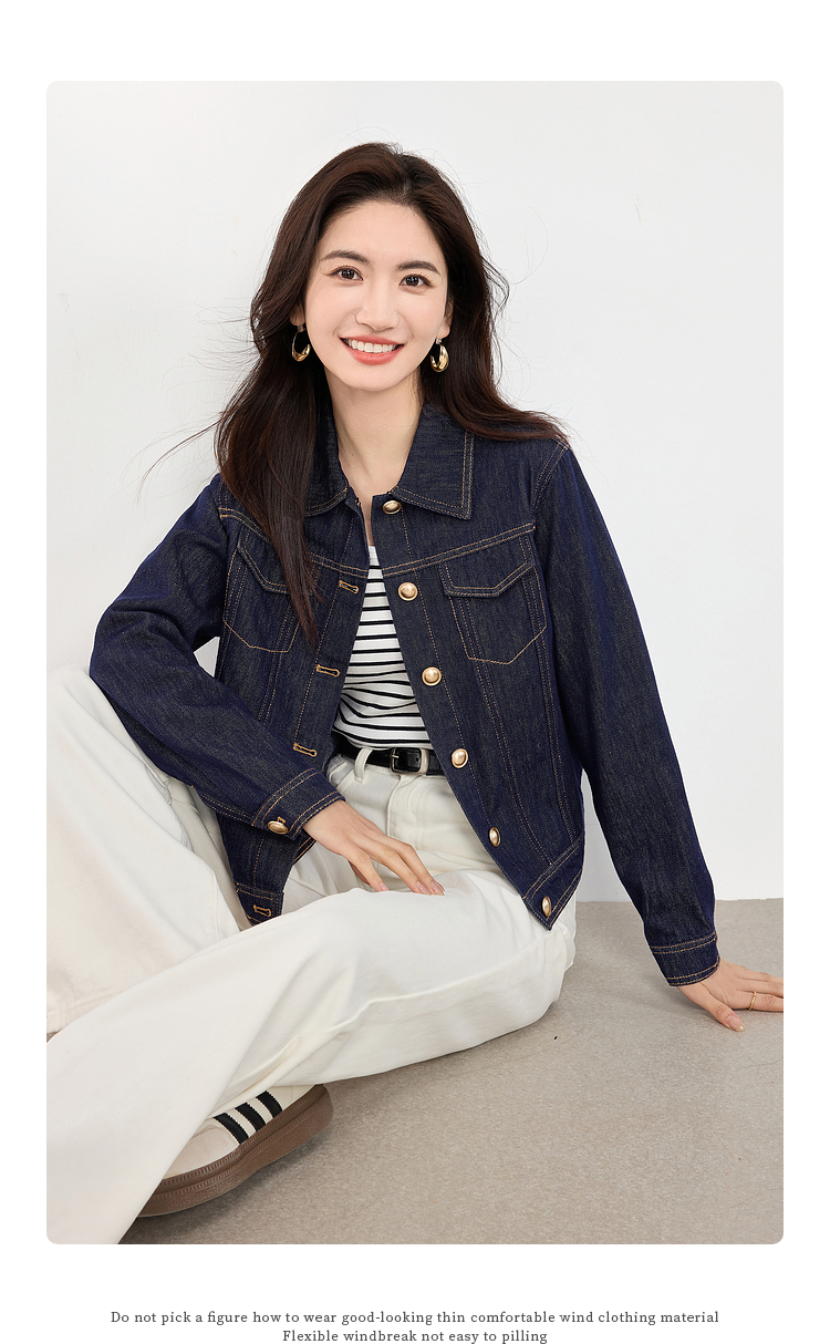 【1件75折】熙世界美式复古牛仔外套女2025春秋新款百搭休闲翻领夹克开衫上衣