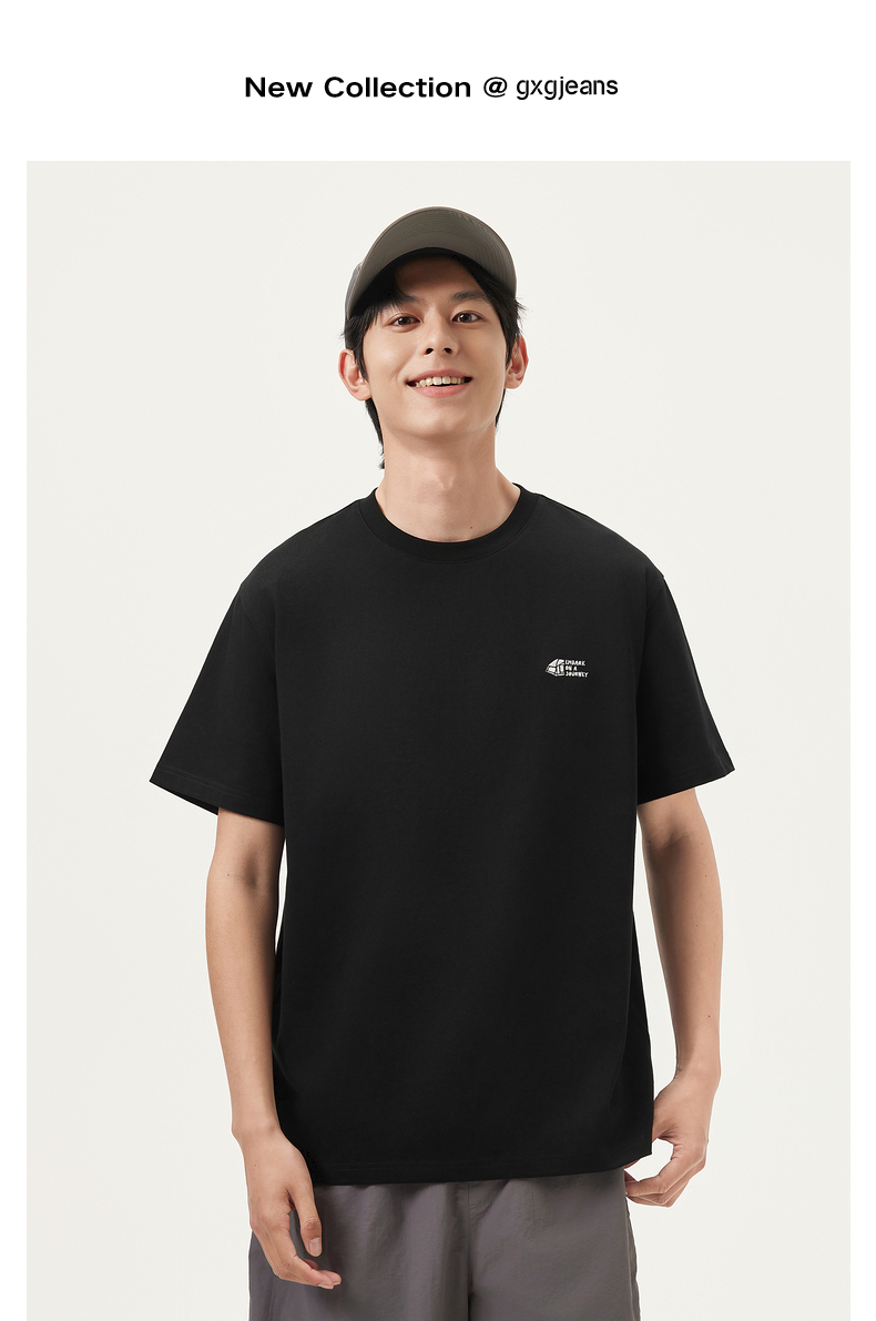 gxg.jeans男装 黑色后背印花时尚潮流宽松短袖T恤男 25年夏季新款