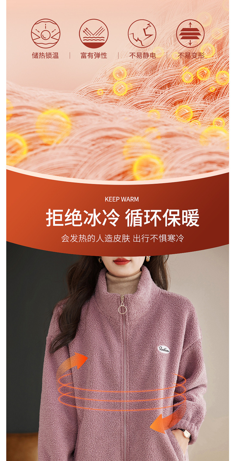 加绒加厚羊羔绒外套女冬季2025新款颗粒绒大码女士爆款摇粒绒上衣