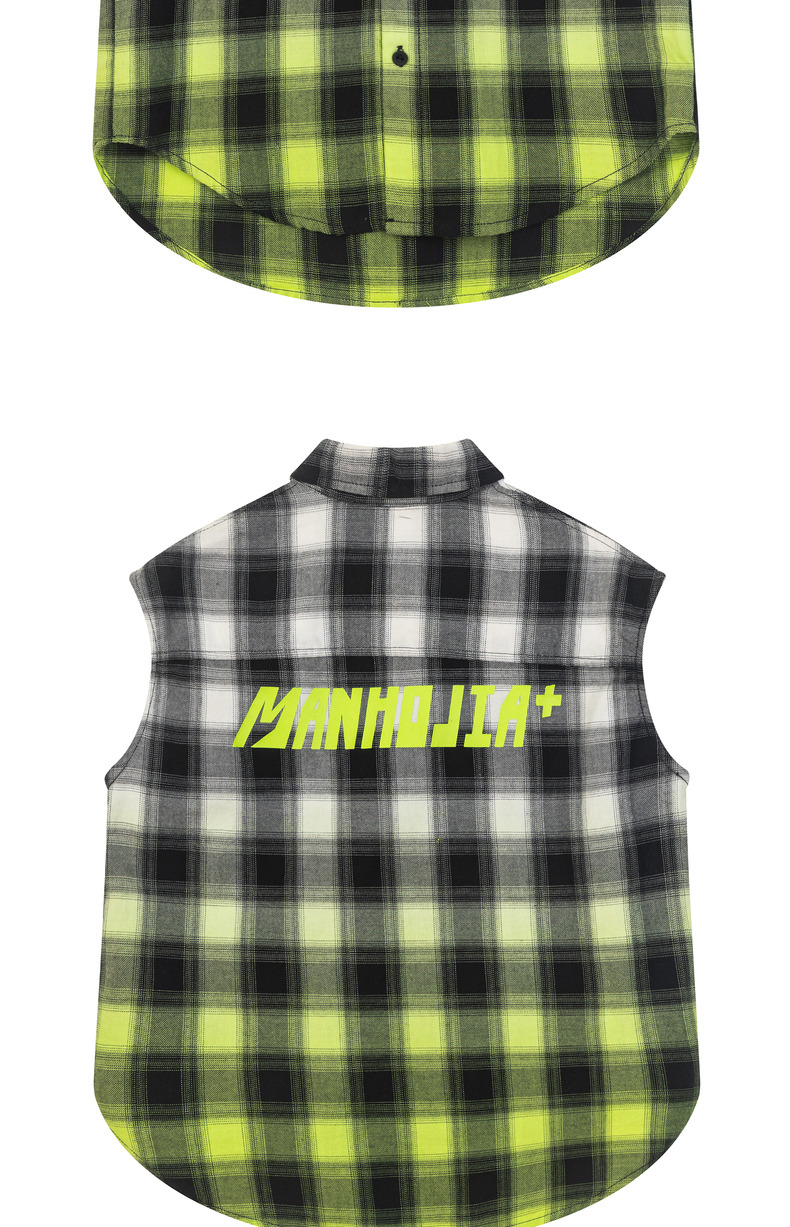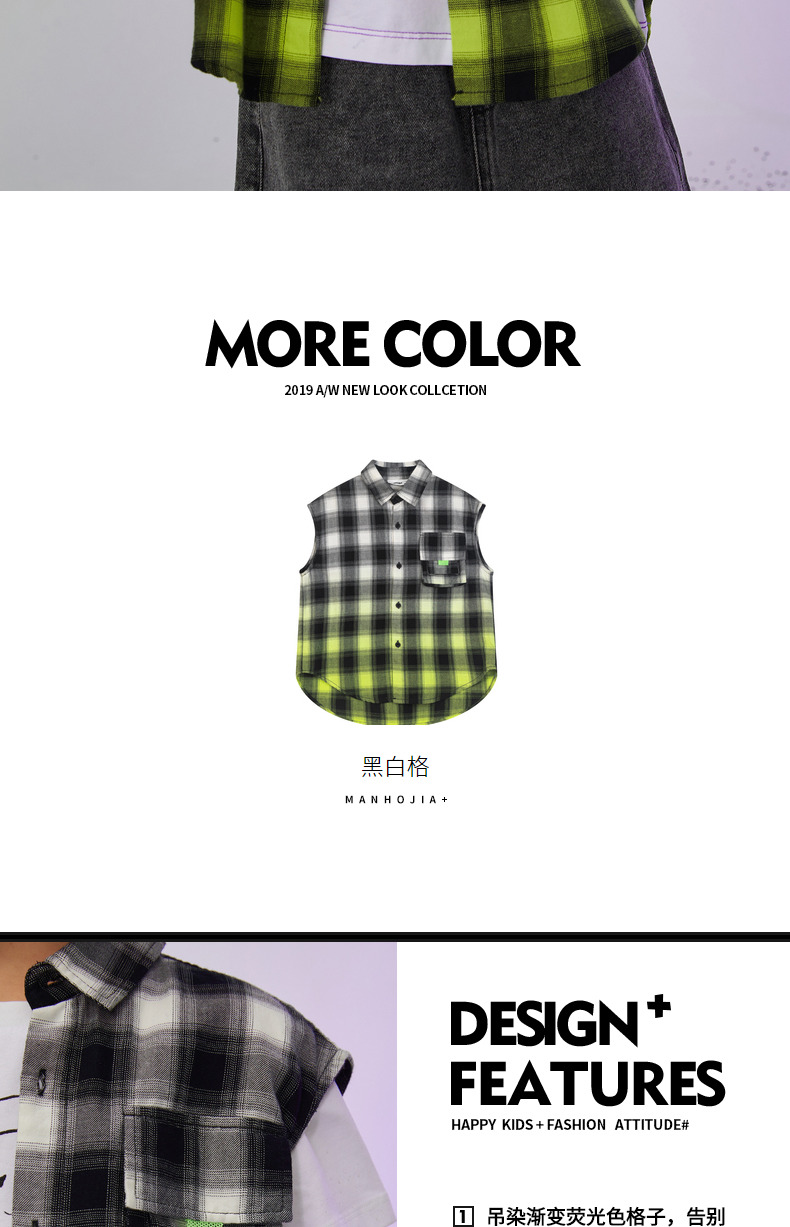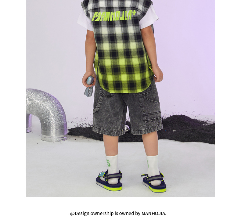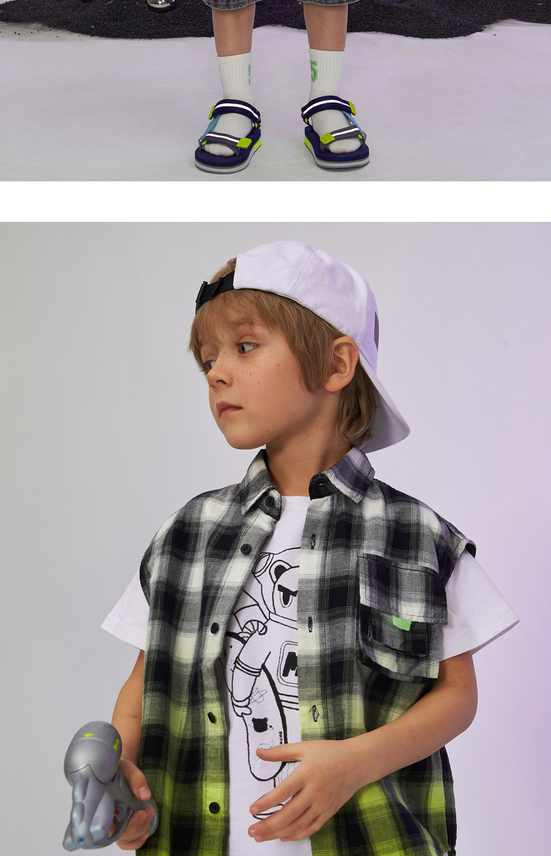 漫画家童装纯棉儿童格子衬衫无袖男童潮款夏季女童衬衣上衣韩版