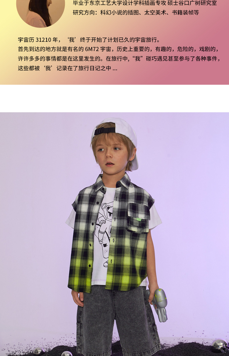 - 马拉丁旗下的城市户外潮童品牌,为3-12岁的孩子提供实用与细节设计的时尚度童装,打造现代简潮和城市户外感的着装,man游童年的冒险jia!