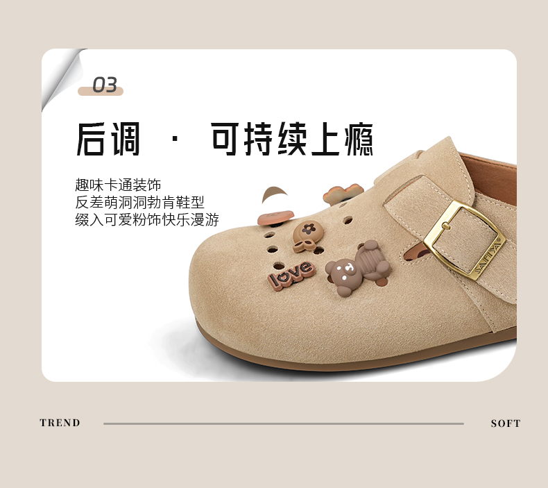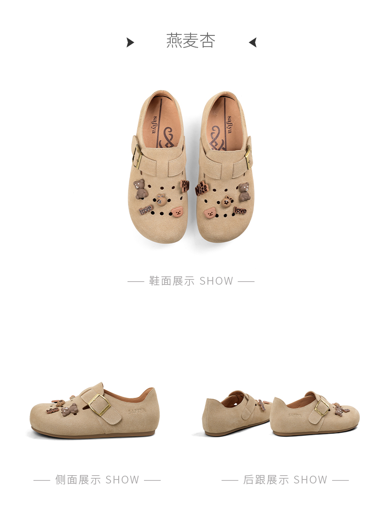预售10天|Safiya/索菲娅2025一脚蹬可爱卡通外穿百搭休闲懒人平底勃肯鞋 SFD1112422