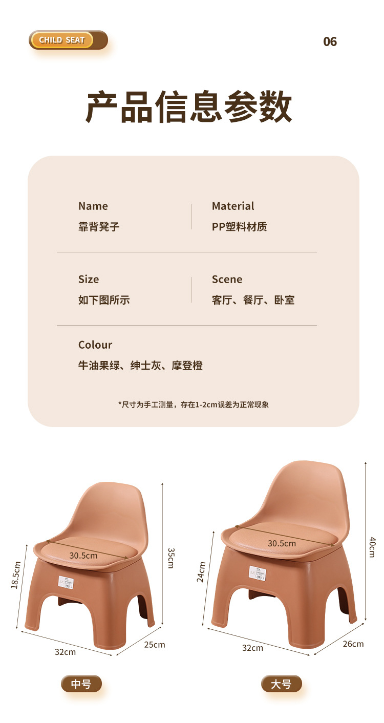 「升级靠背!数色可选」塑料小凳子居家日用椅子小板凳儿童靠背椅沙发茶几矮凳成人客厅凳
