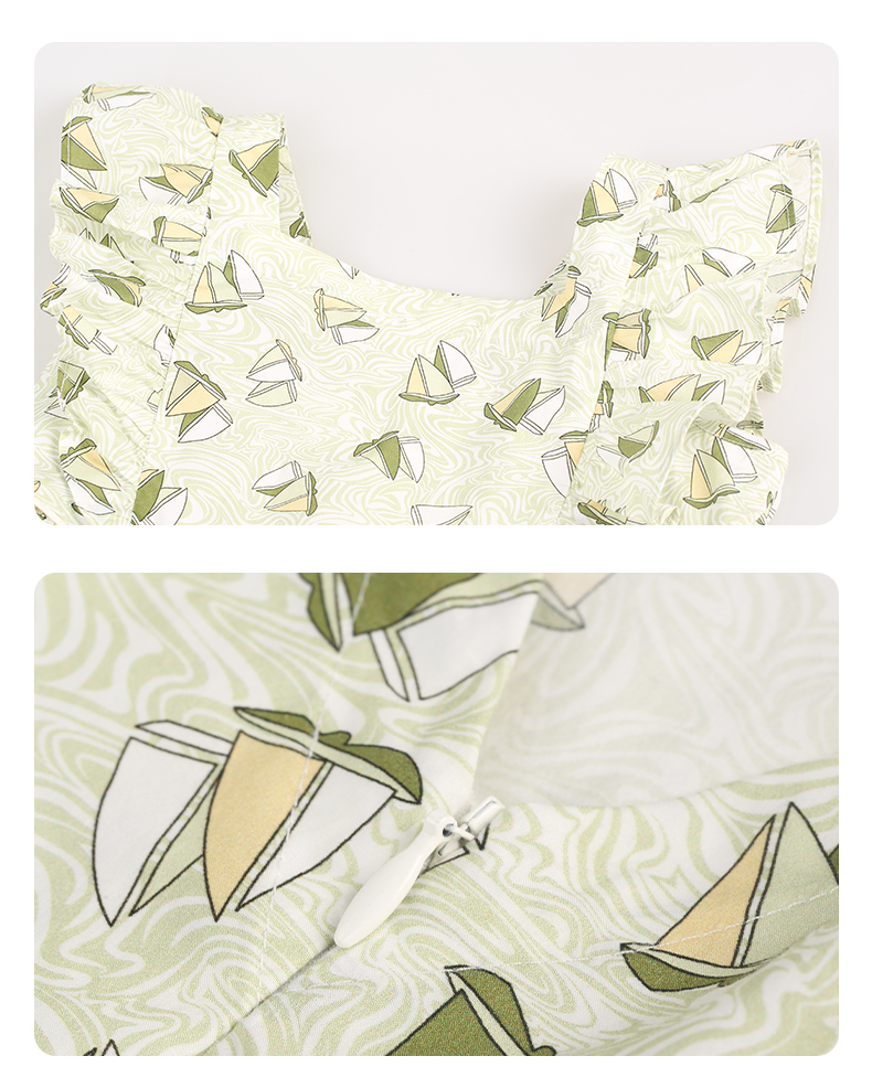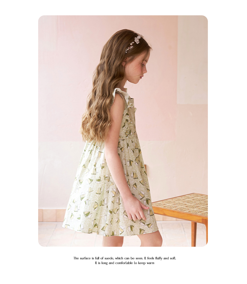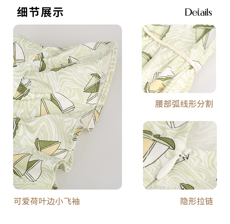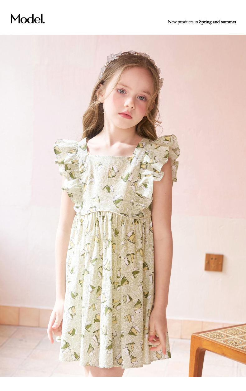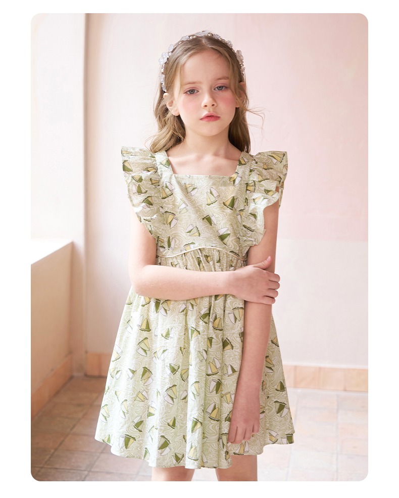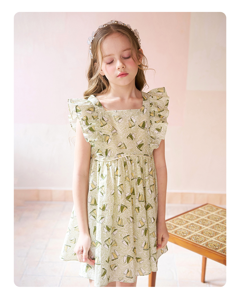 mettekids女童连衣裙夏季新款中大童绿色印花裙子儿童洋气公主裙