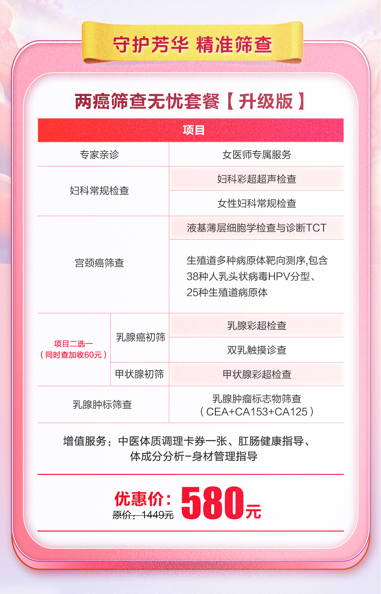 两癌筛查无忧套餐【升级版】