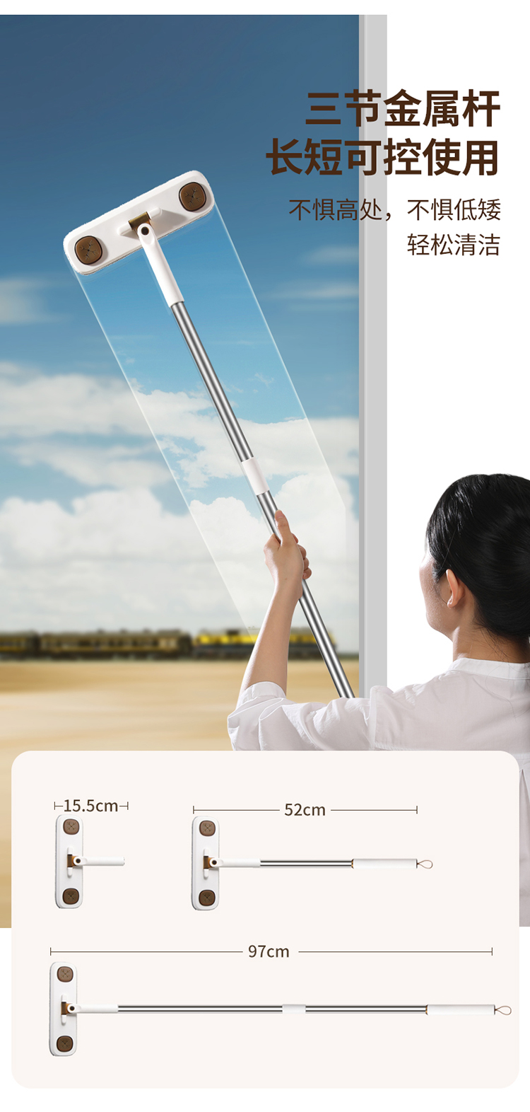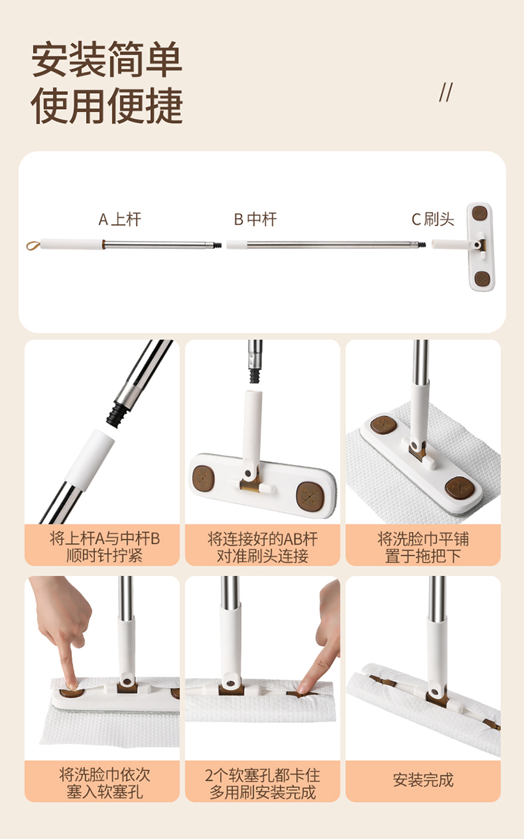 美丽雅洗脸巾夹布小拖把迷你懒人免手洗一次性家用墙面桌面平板拖地墩布
