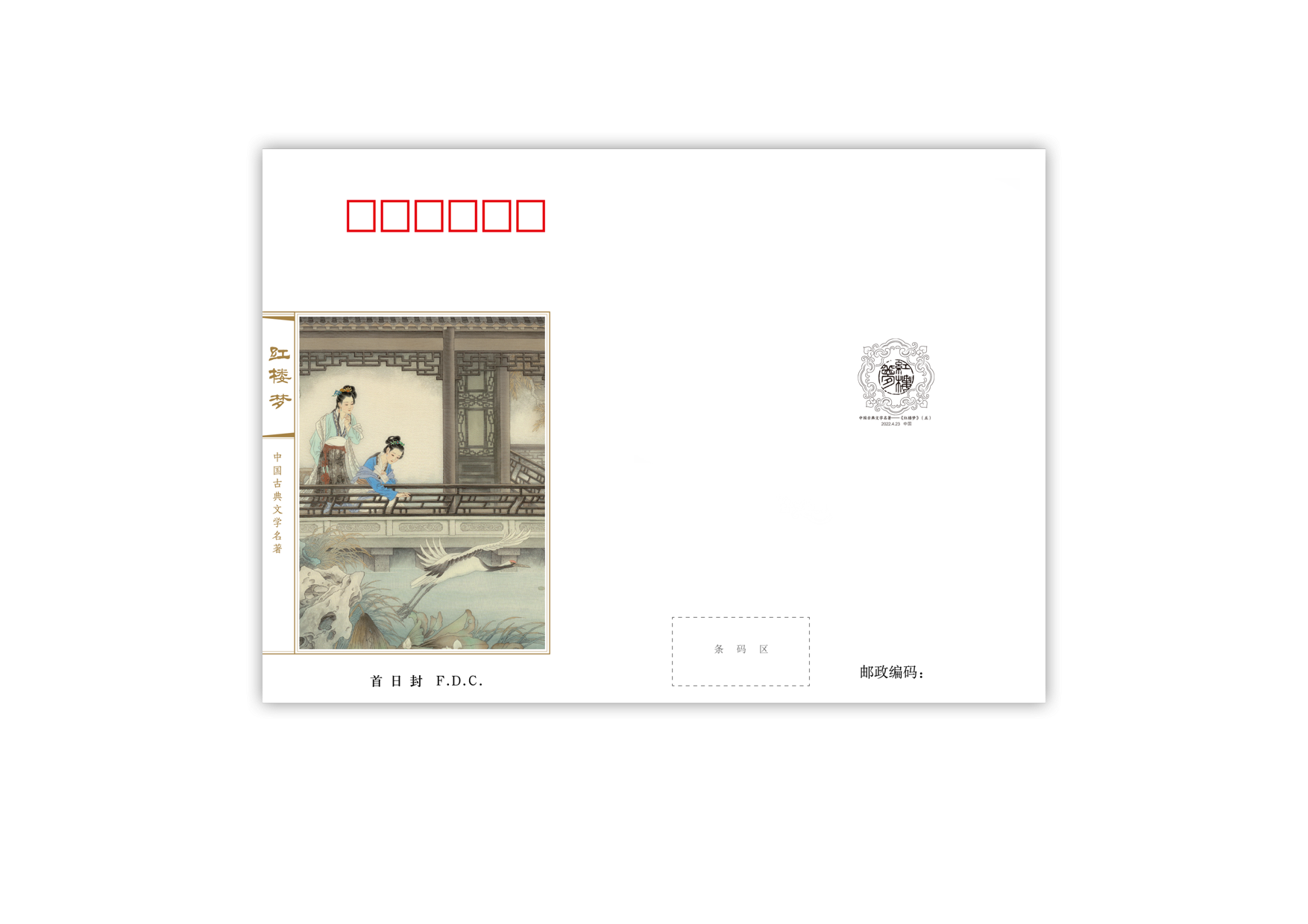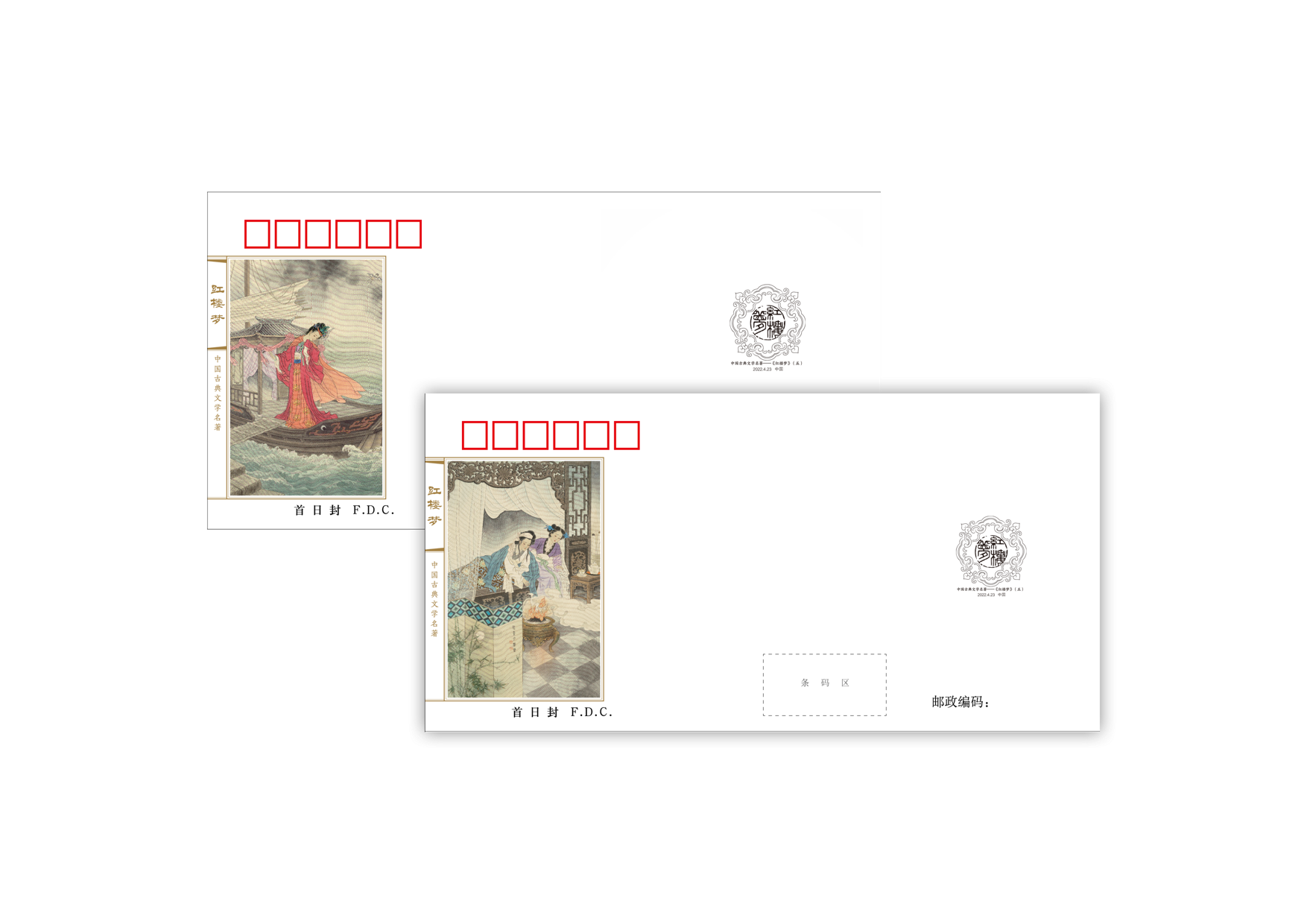 首日封一套两枚:贴《中国古典文学名著——〈红楼梦〉(五)》套票,销首日戳