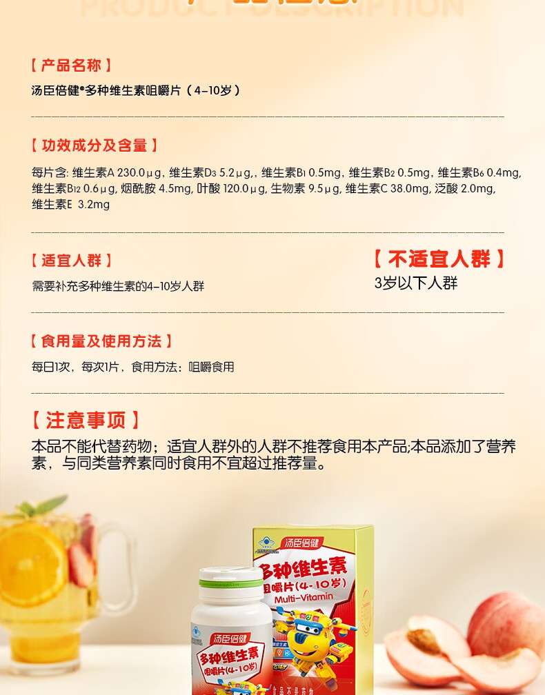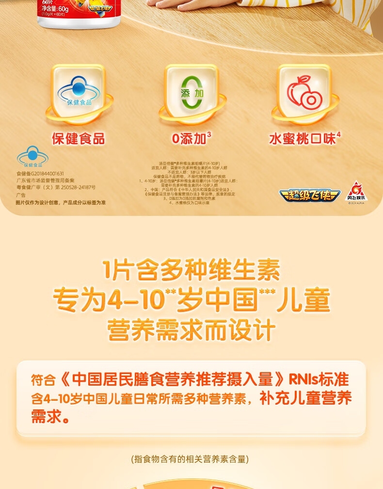 汤臣倍健多种维生素咀嚼片(4-10岁) 优惠装(60片*2)- 超级飞侠装 多种维生素非钙铁锌
