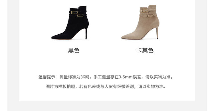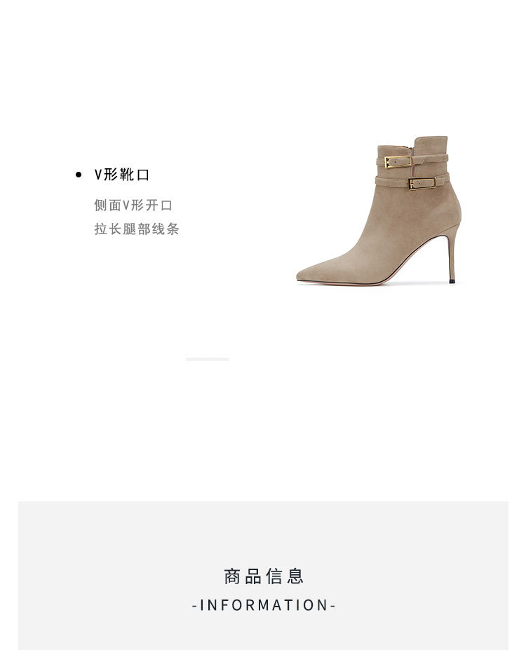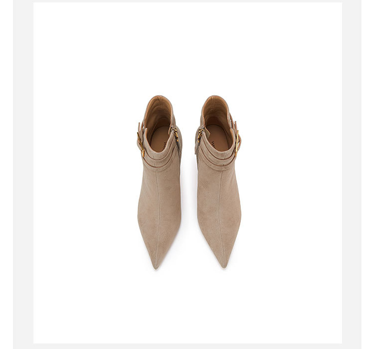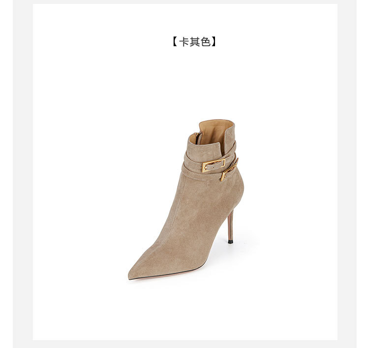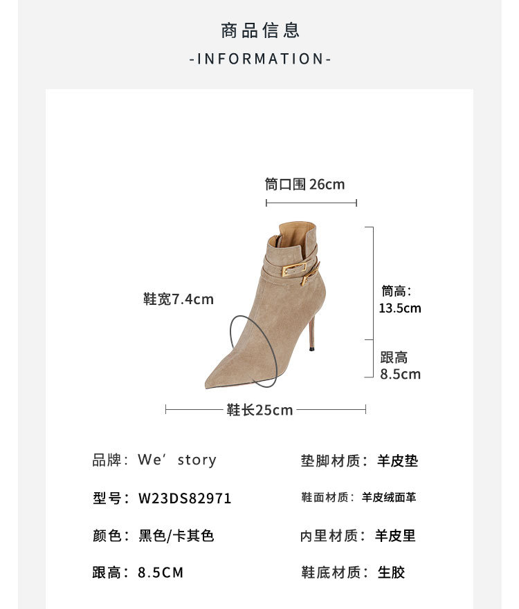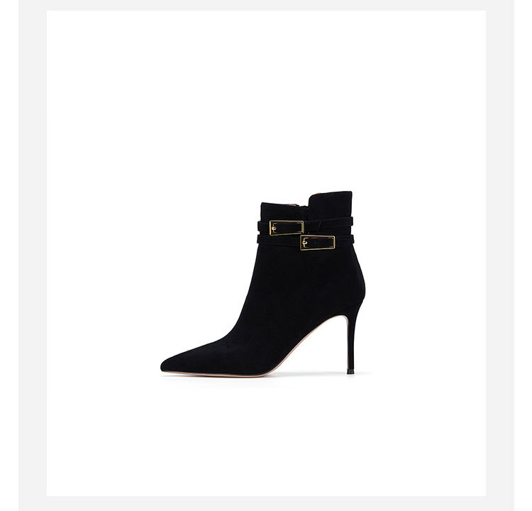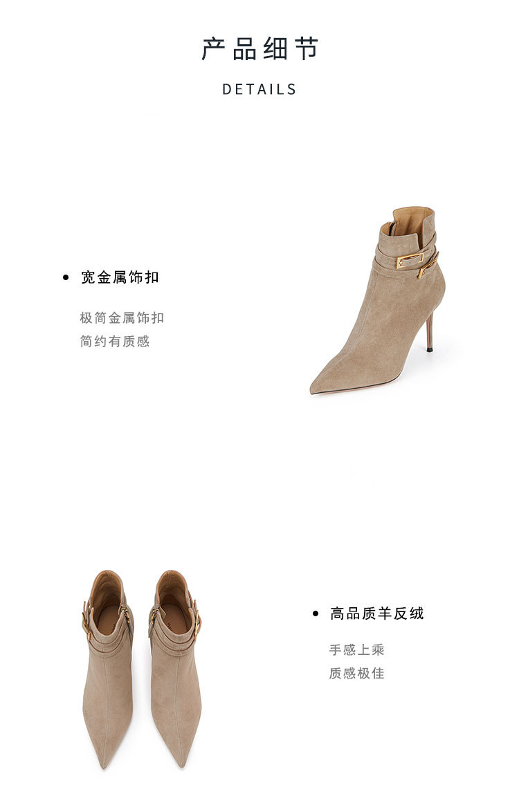 westory冬季尖头金属细高跟时装靴气质性感女短靴W23DS82971