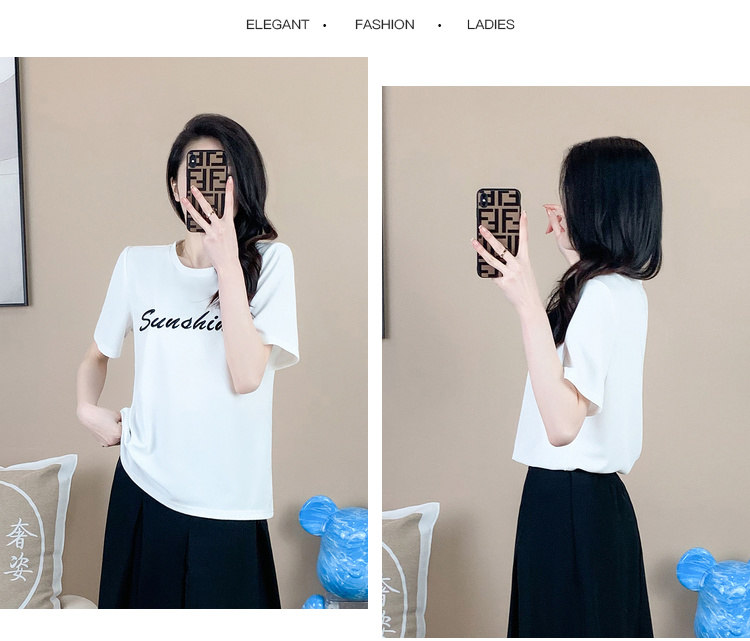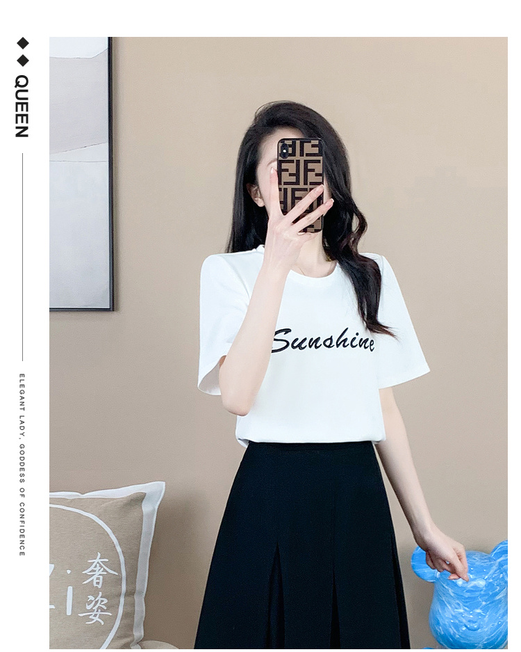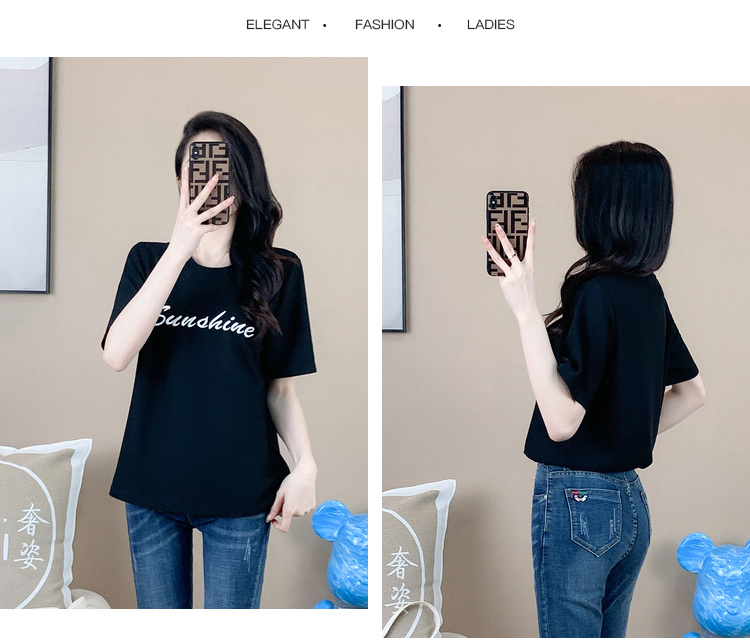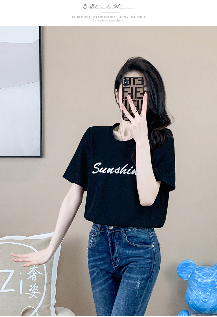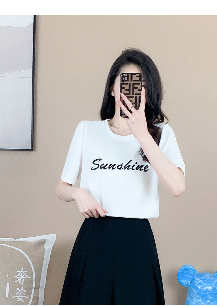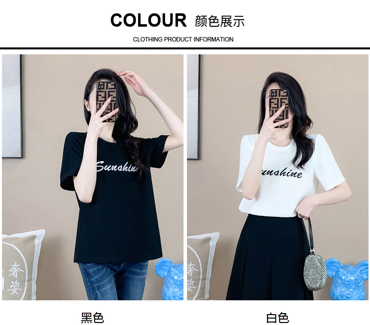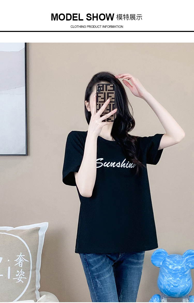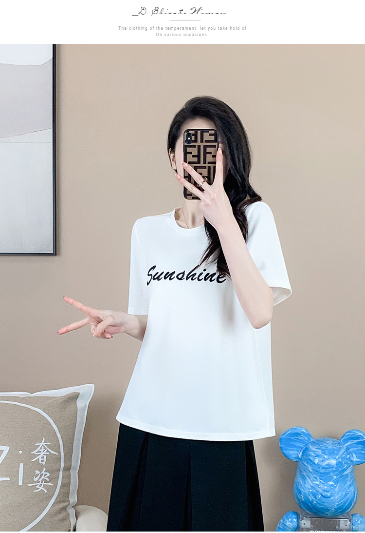 奢姿2025年夏装新款大码女装时尚圆领T恤胖妹妹刺绣字母上衣9932152654