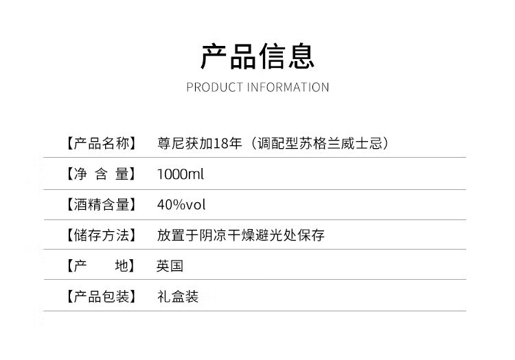 尊尼获加 18年威士忌 1000ml