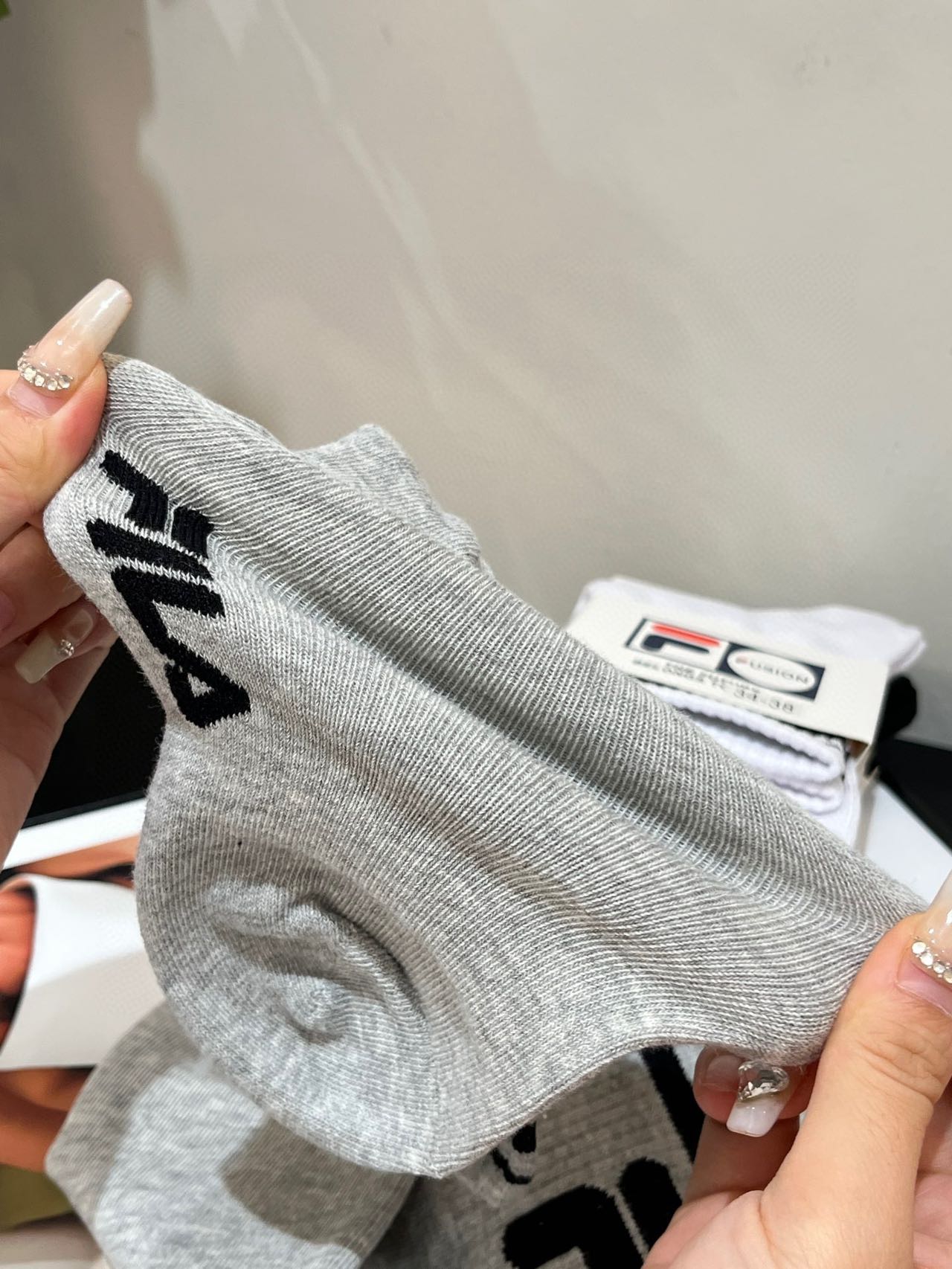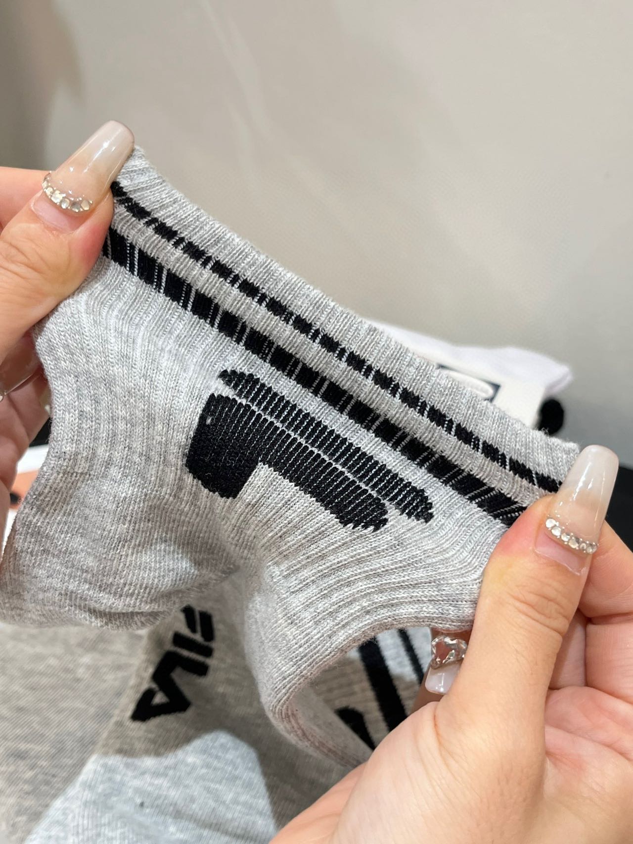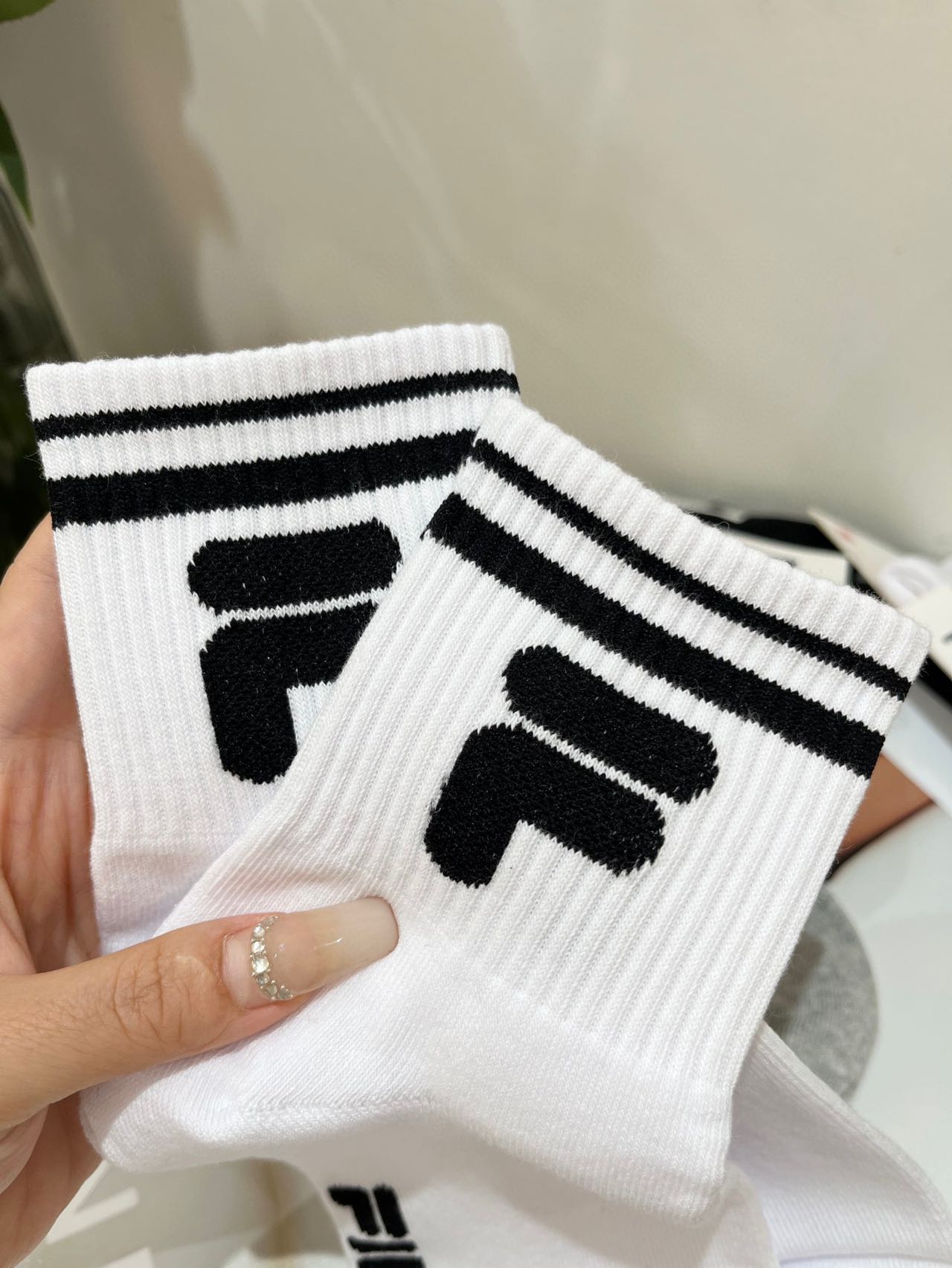 斐乐正品尾单中筒袜!!原价60一双,售空无补速抢 80.5%精梳棉,一年四季都可以穿, 绝对不是路边10元三双那种品质哈!!超级大的弹力,不顶脚趾头,特别舒服,吸汗透气!! 搭配芭比裤打底袜穿贼洋气