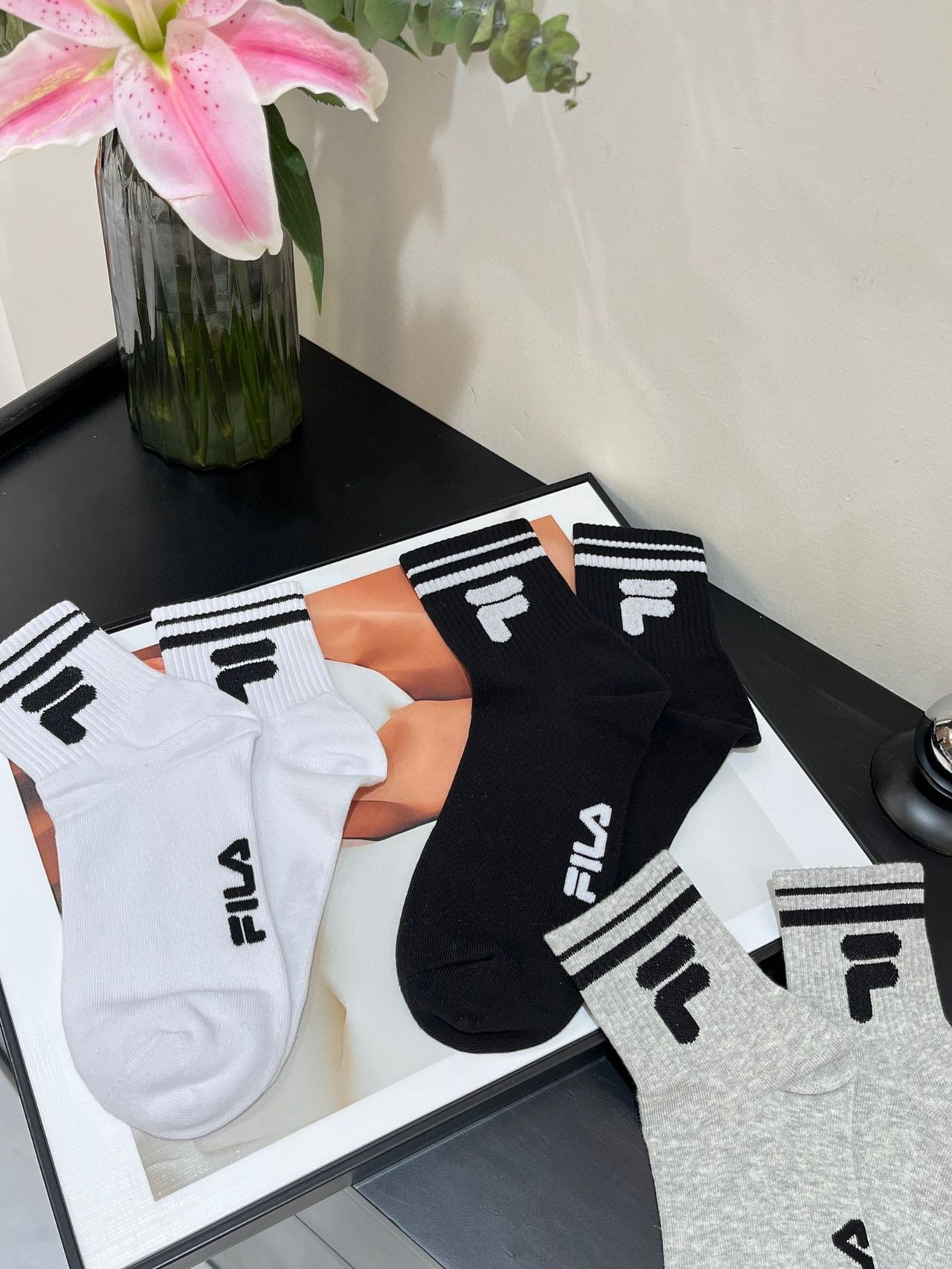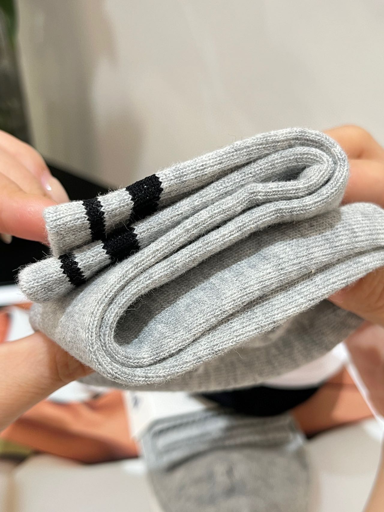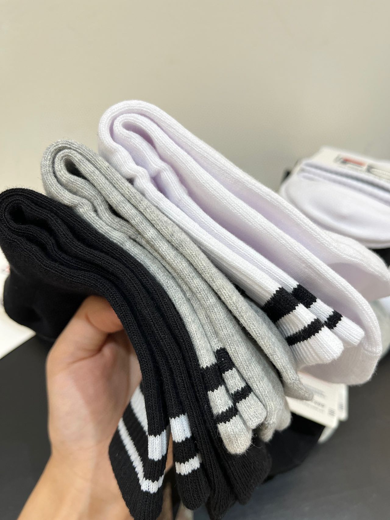 斐乐正品尾单中筒袜!!原价60一双,售空无补速抢 80.5%精梳棉,一年四季都可以穿, 绝对不是路边10元三双那种品质哈!!超级大的弹力,不顶脚趾头,特别舒服,吸汗透气!! 搭配芭比裤打底袜穿贼洋气