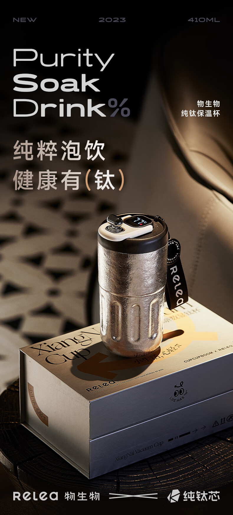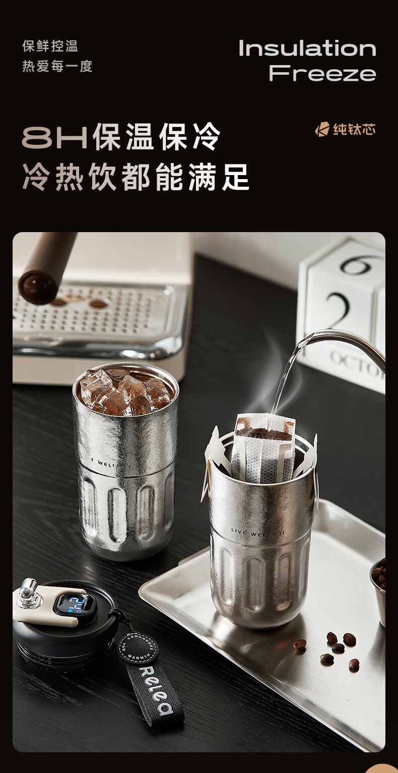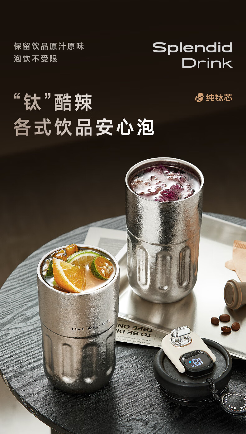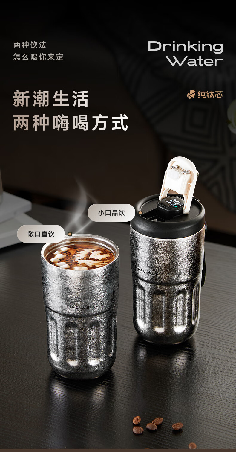 物生物钛杯男女纯钛保温杯显温咖啡杯情侣水杯礼盒装杯子送礼生日礼物