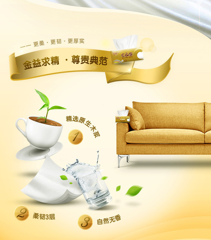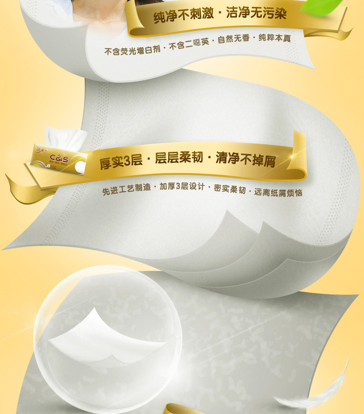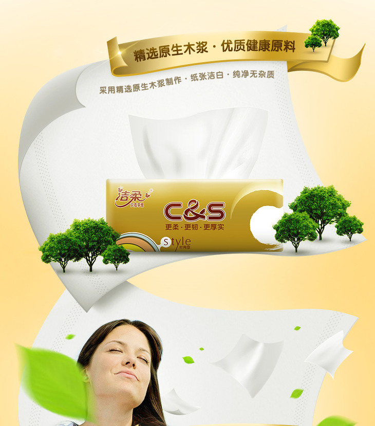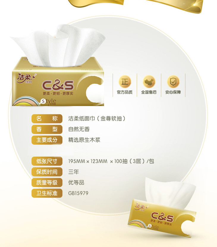 【3层100抽*20包/箱】洁柔C&S抽纸整箱软抽纸巾餐巾纸面巾居家日用清洁工具