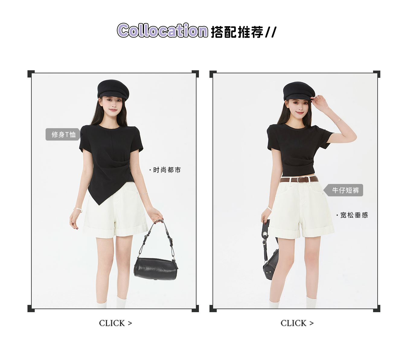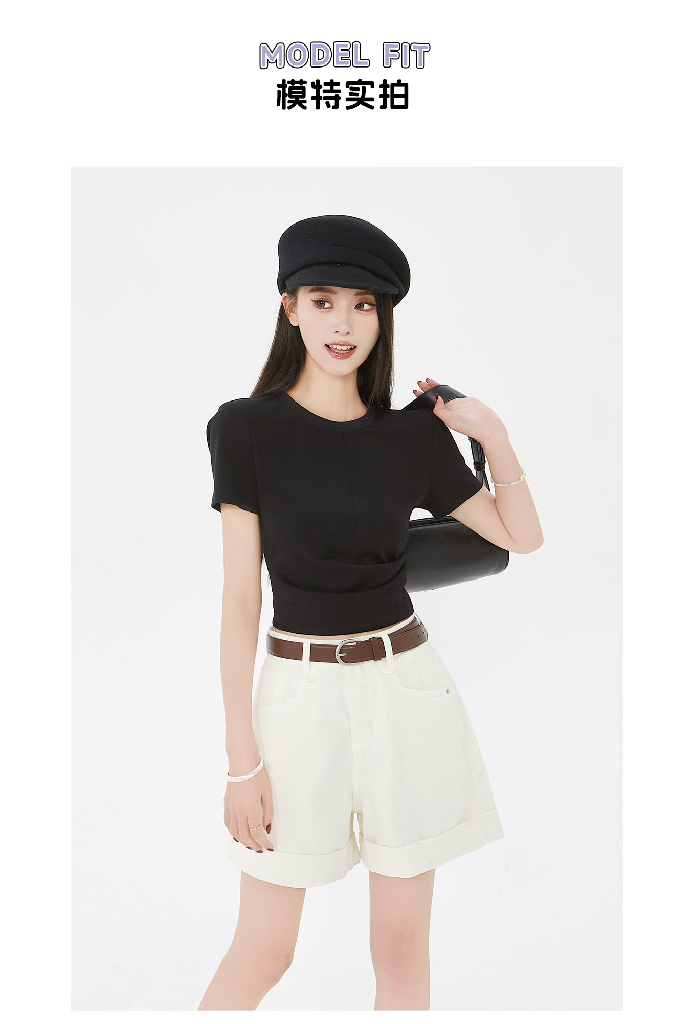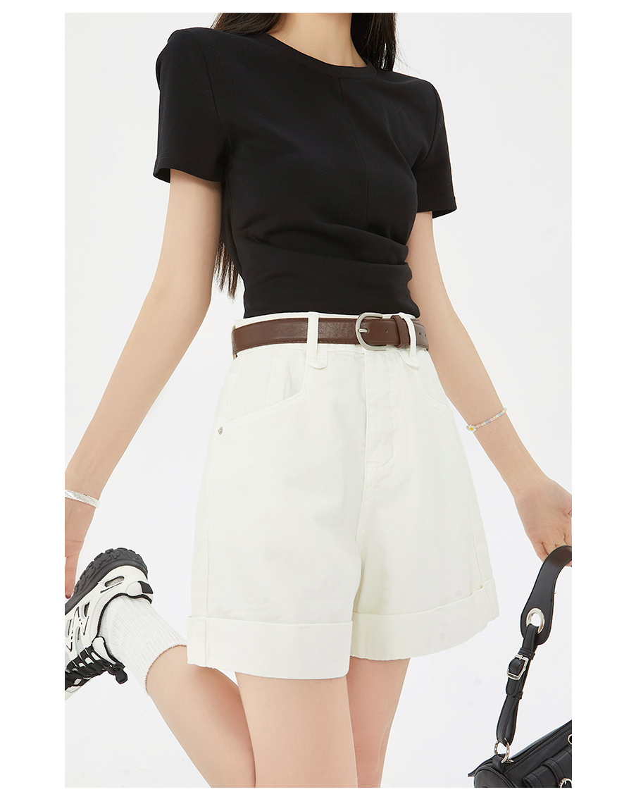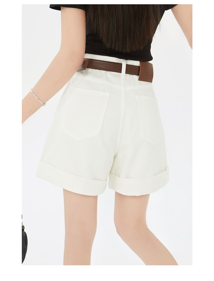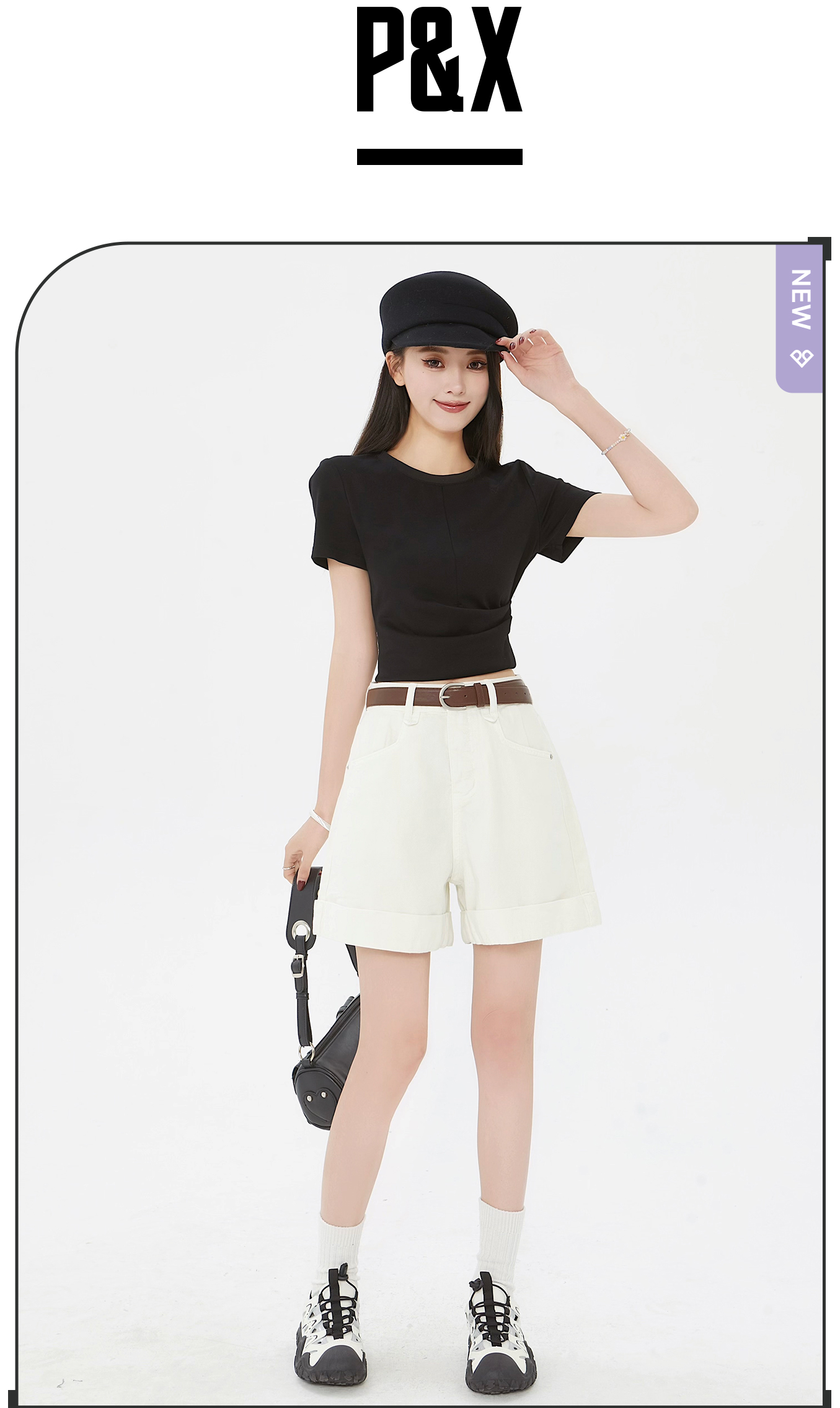 P&X设计师女装2025夏季时尚直筒百搭宽松牛仔短裤825227179 白色