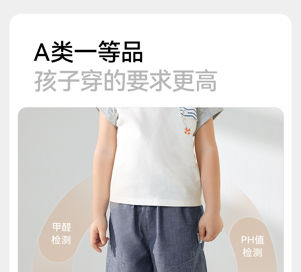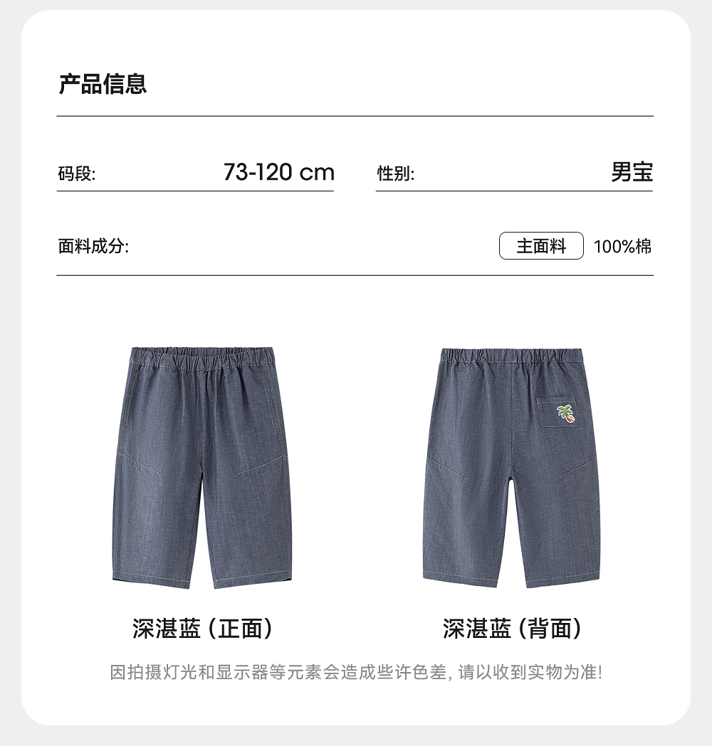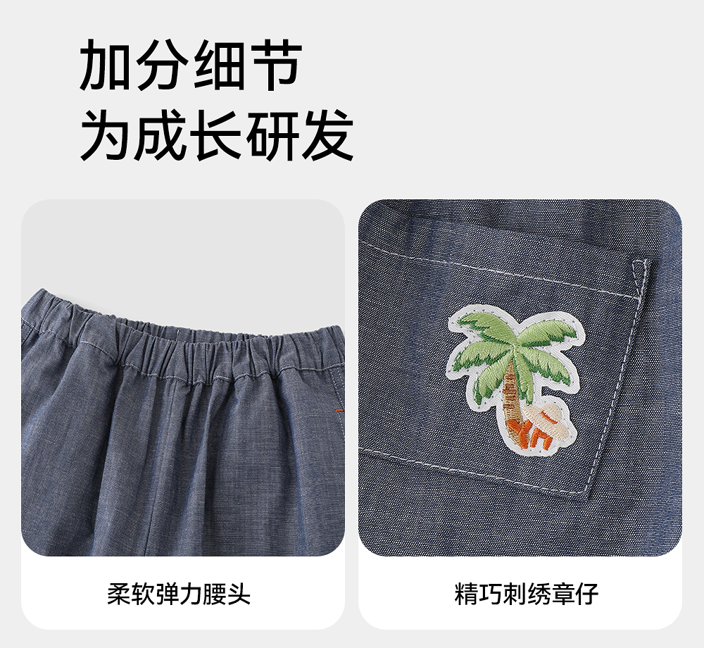 英氏儿童裤子夏季透气男宝纯棉中裤2025新款七分裤YRKZJ2R028A