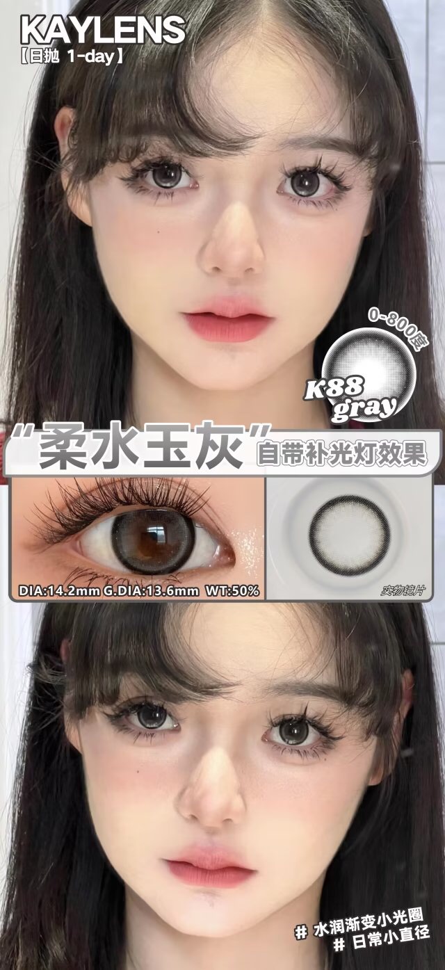 kaylens日抛 柔水玉灰 14.2mm 一盒10片 非离子 日抛无售后!!【1盒1个度数 不同度数拍2盒】