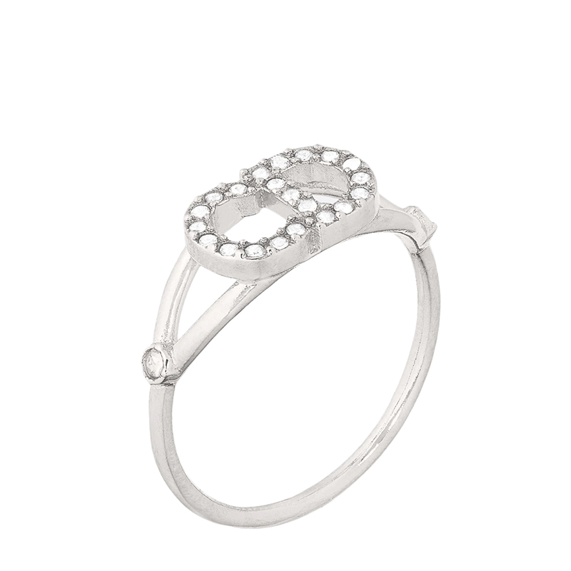 【包税】DIOR/迪奥 21秋冬新款CLAIR D LUNE系列 女士银色饰面金属CD白色仿水晶点缀戒指指环R1137CDLCY_D102