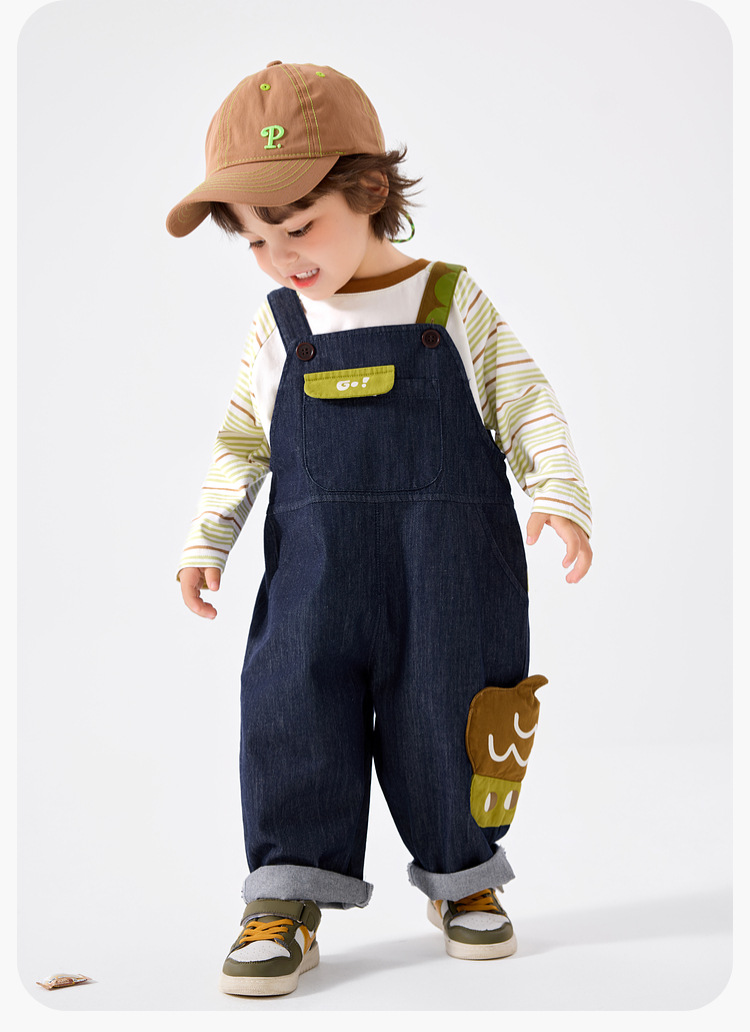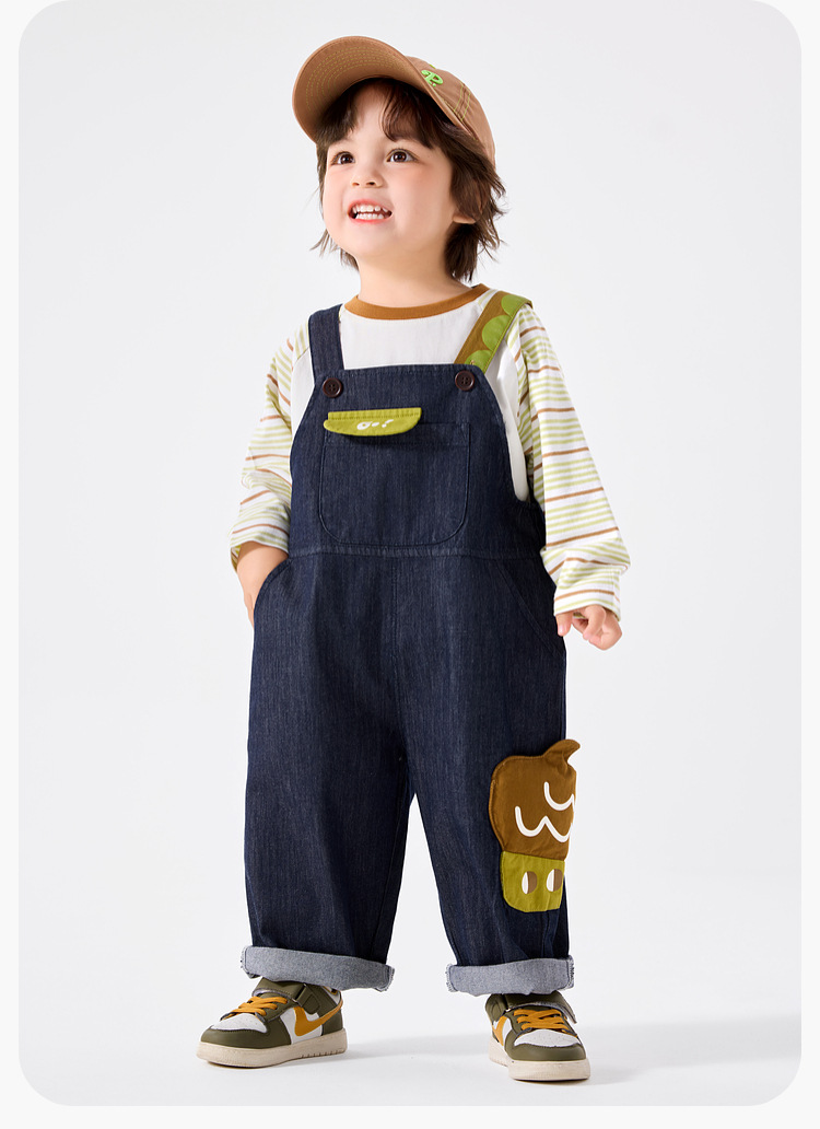 【活性防褪色】嘟嘟家宝宝背带裤秋季卡通儿童牛仔裤秋款男童秋装