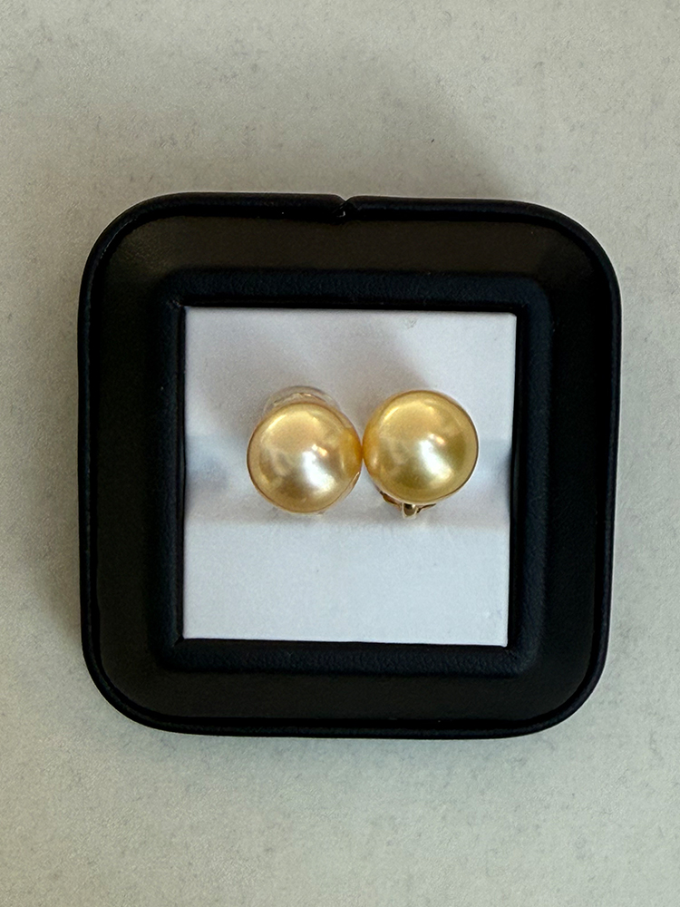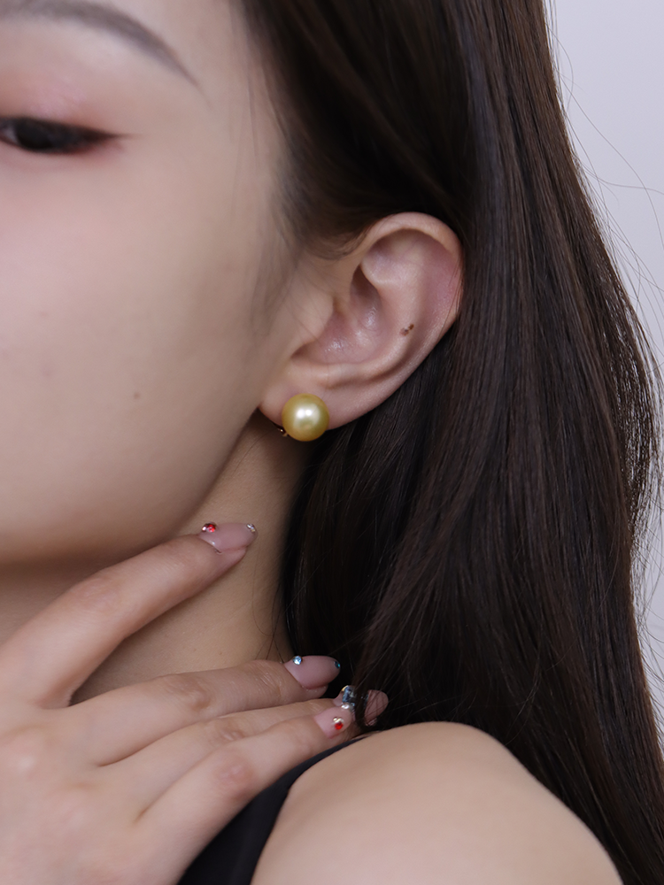 【挚友限定】(经典款)真科研茶金等级 18K金南洋金珠耳夹