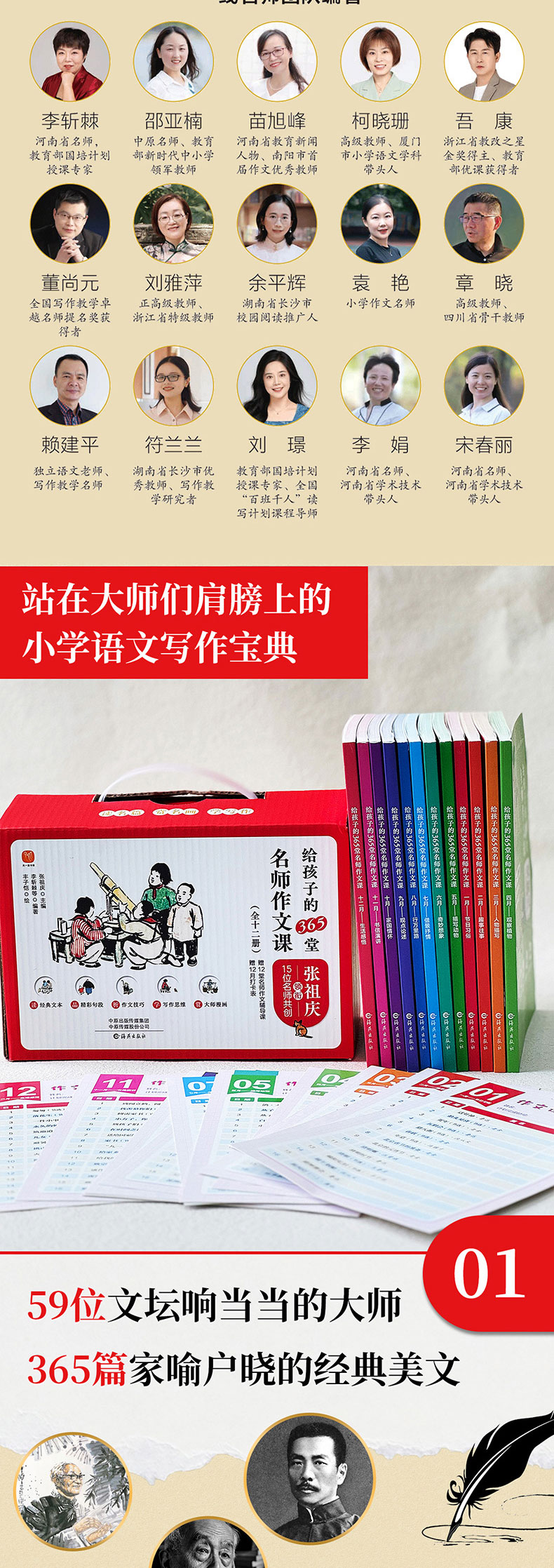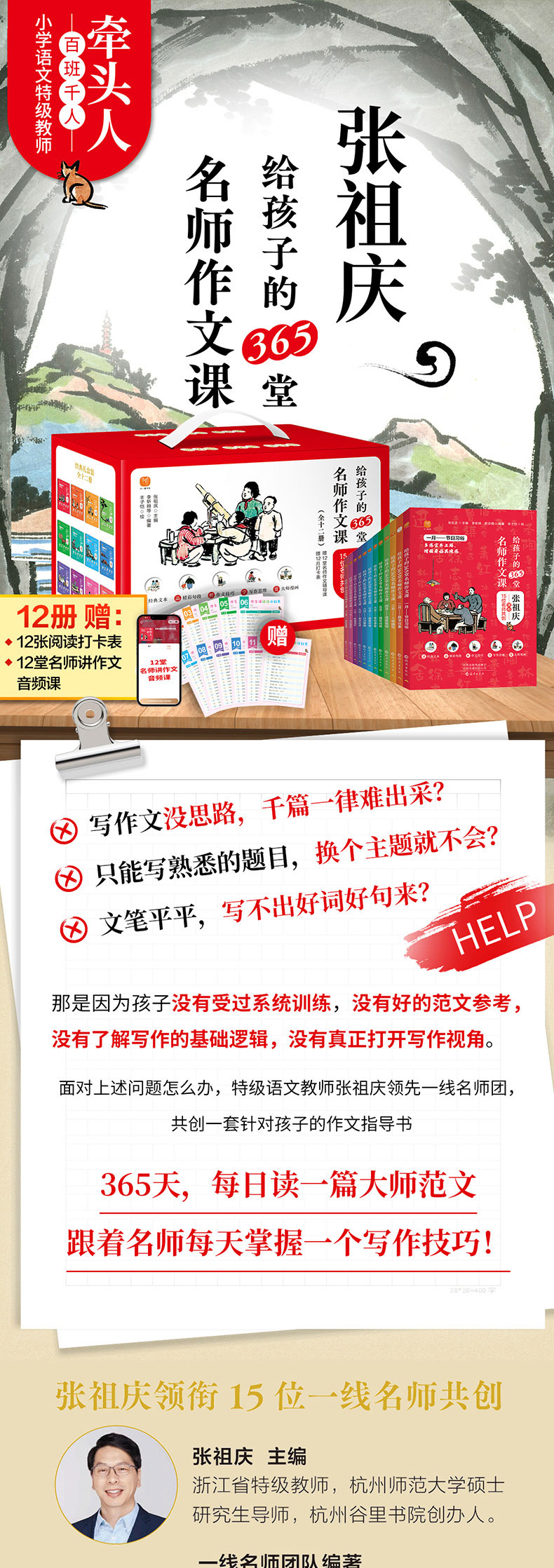 张祖庆给孩子的365堂作文课(全12册) 作文素材 名师赏析 中小学生课外阅读书籍暑假阅读暑假课外书课外自主阅读假期读物