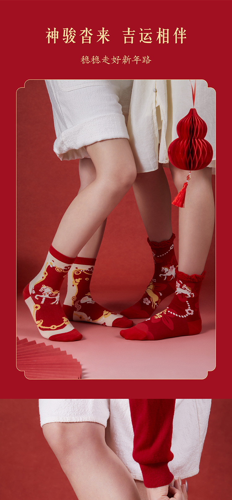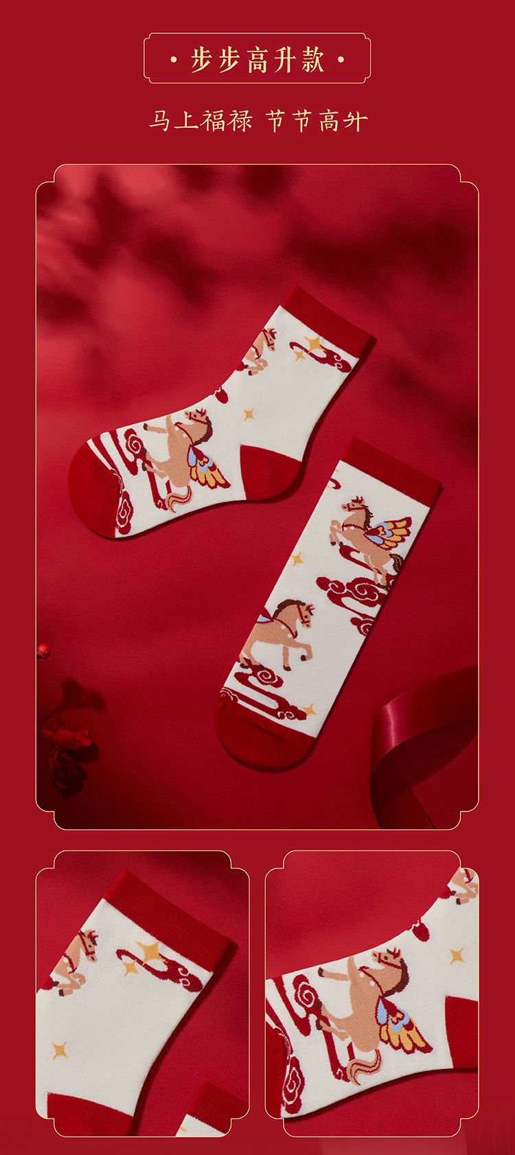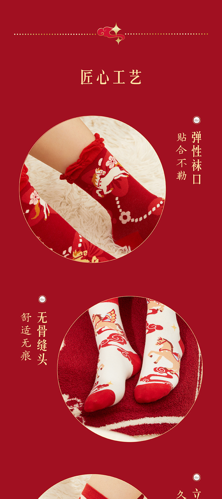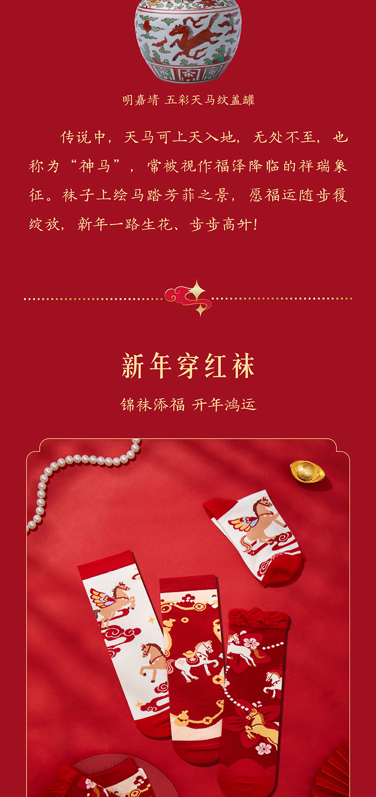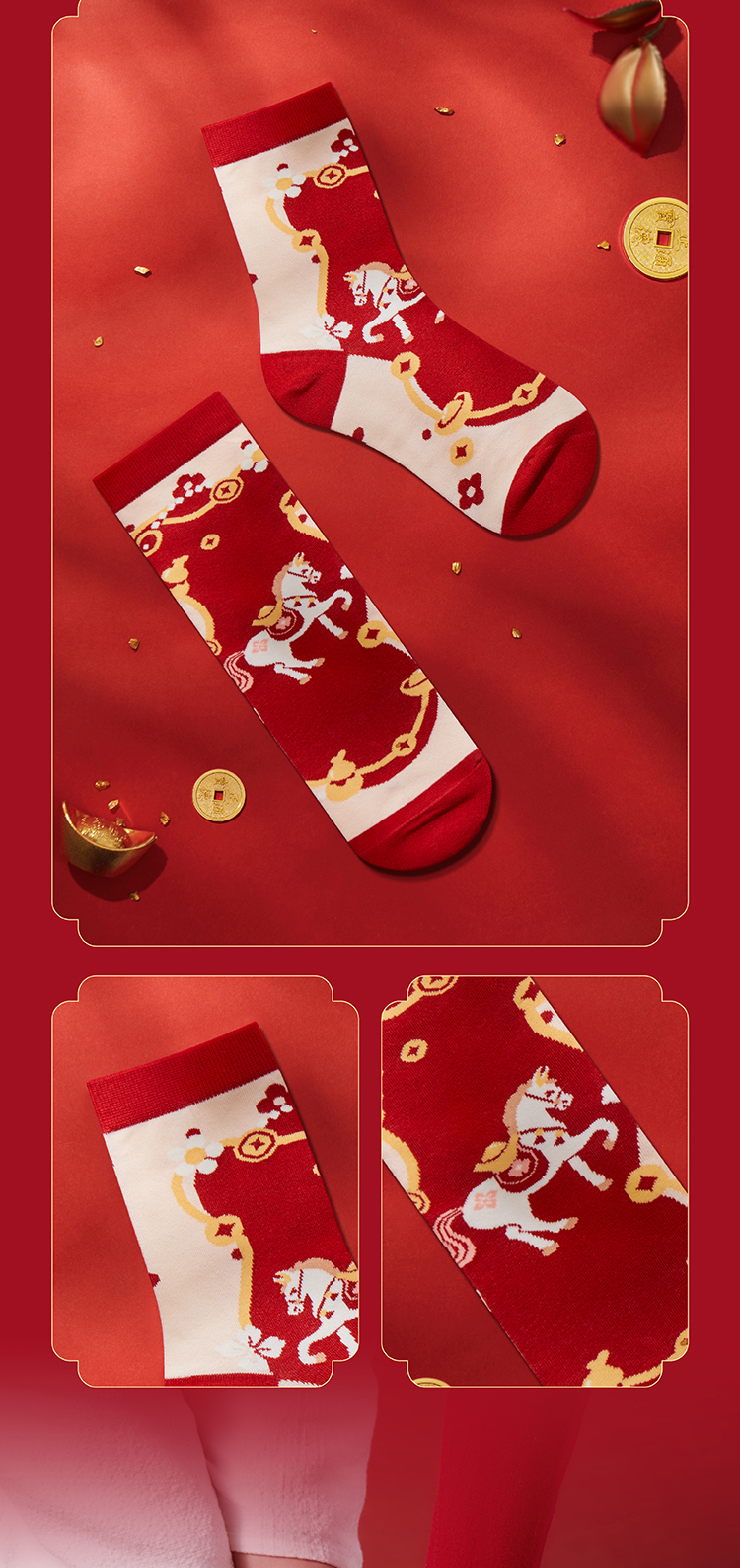 【故宫袜子】马踏芳菲袜子女中筒袜秋冬红袜子新年马年本命年礼盒