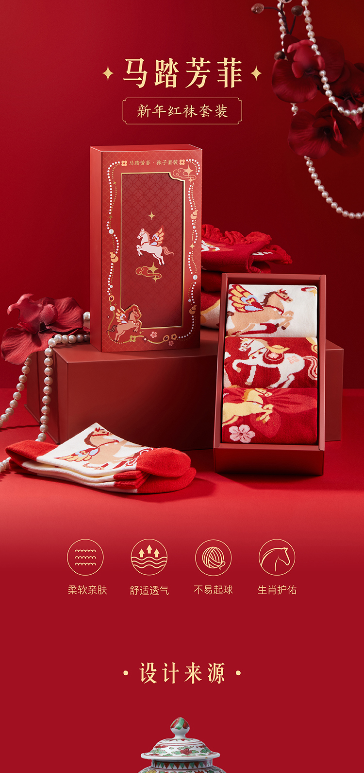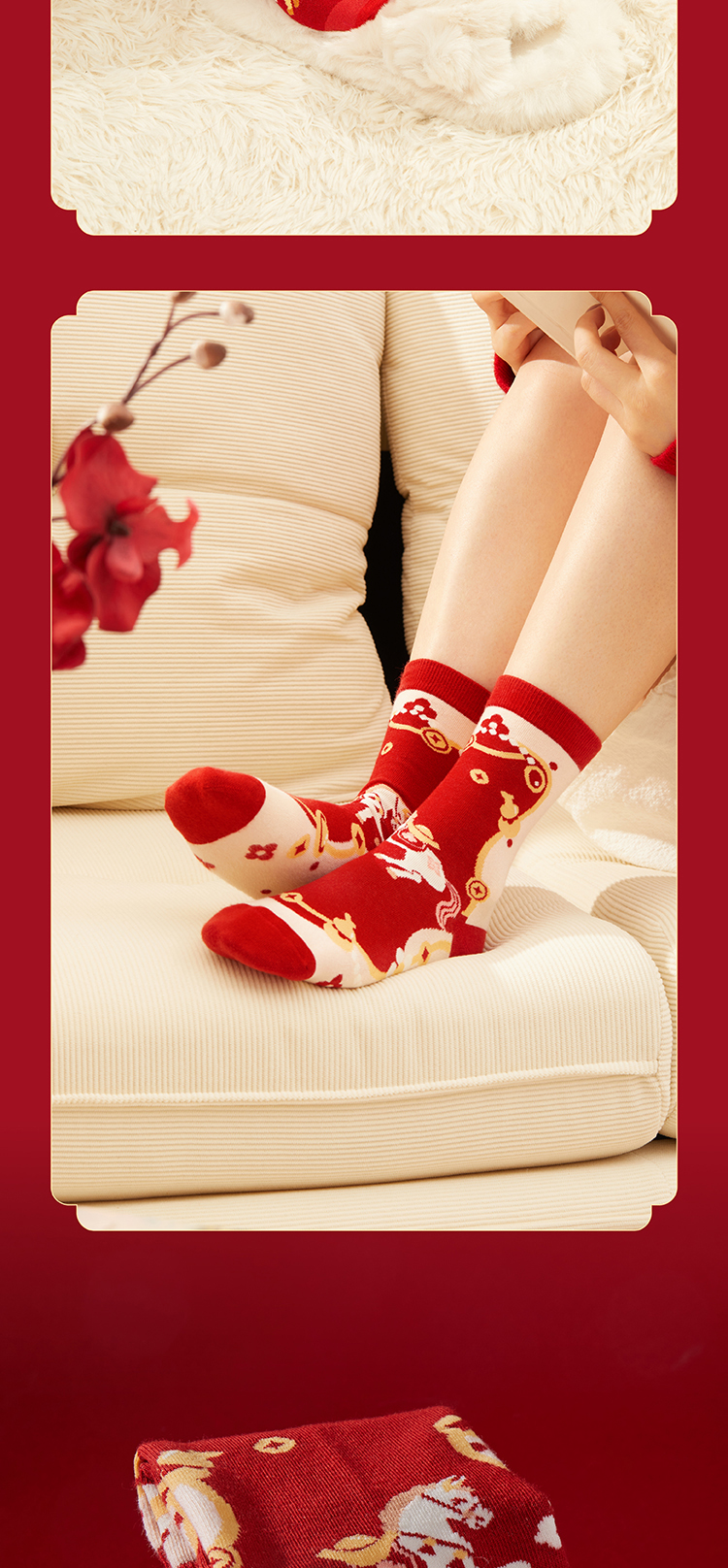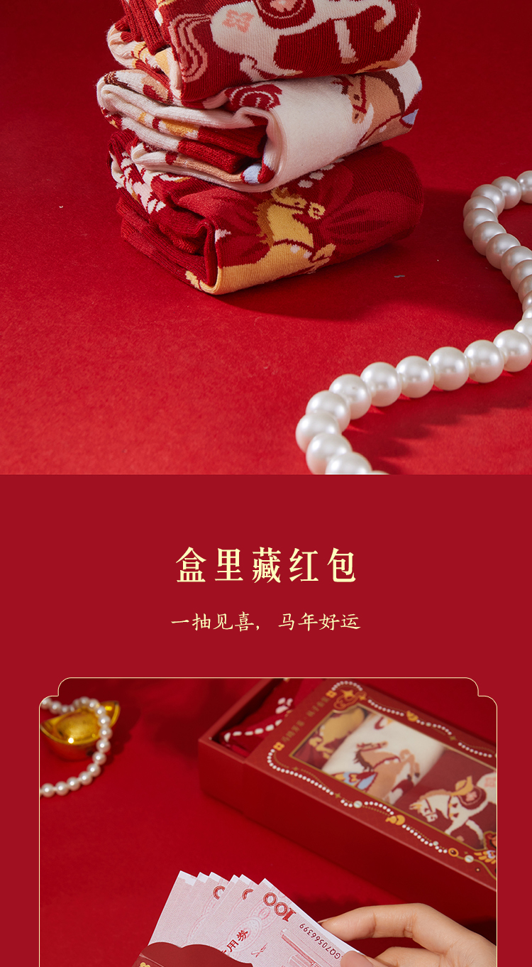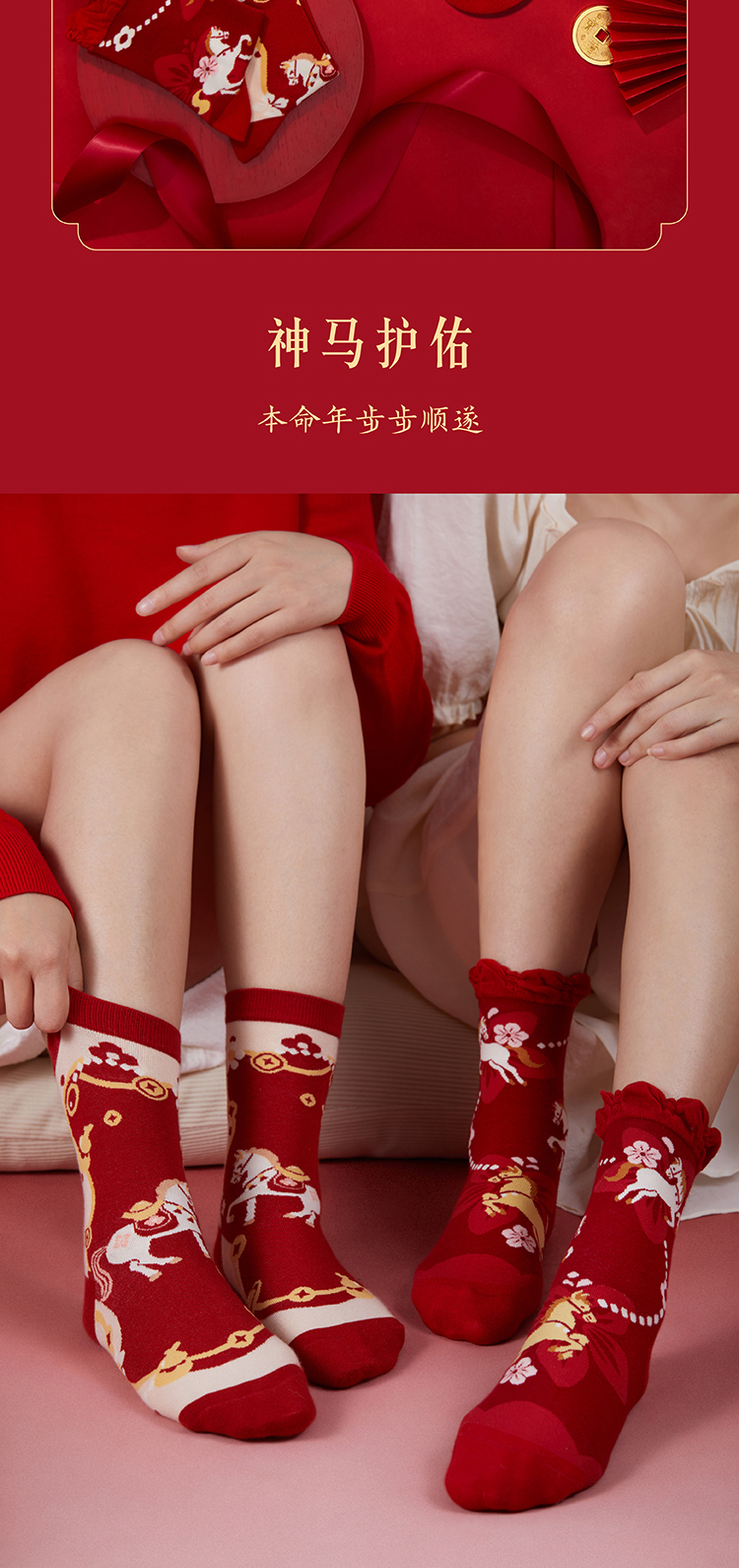 【故宫袜子】马踏芳菲袜子女中筒袜秋冬红袜子新年马年本命年礼盒
