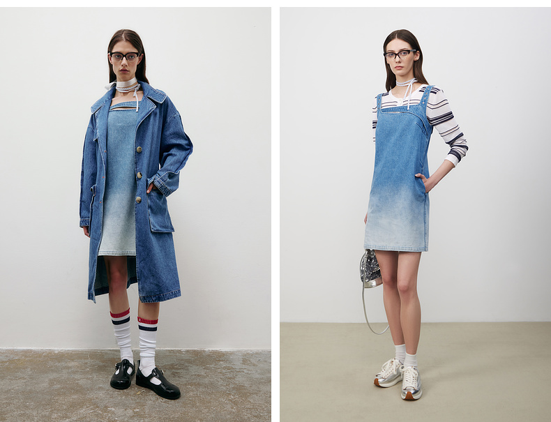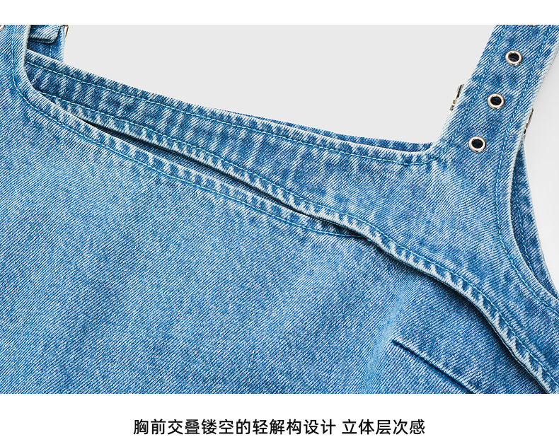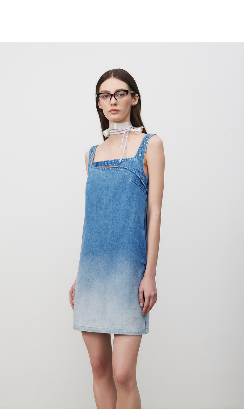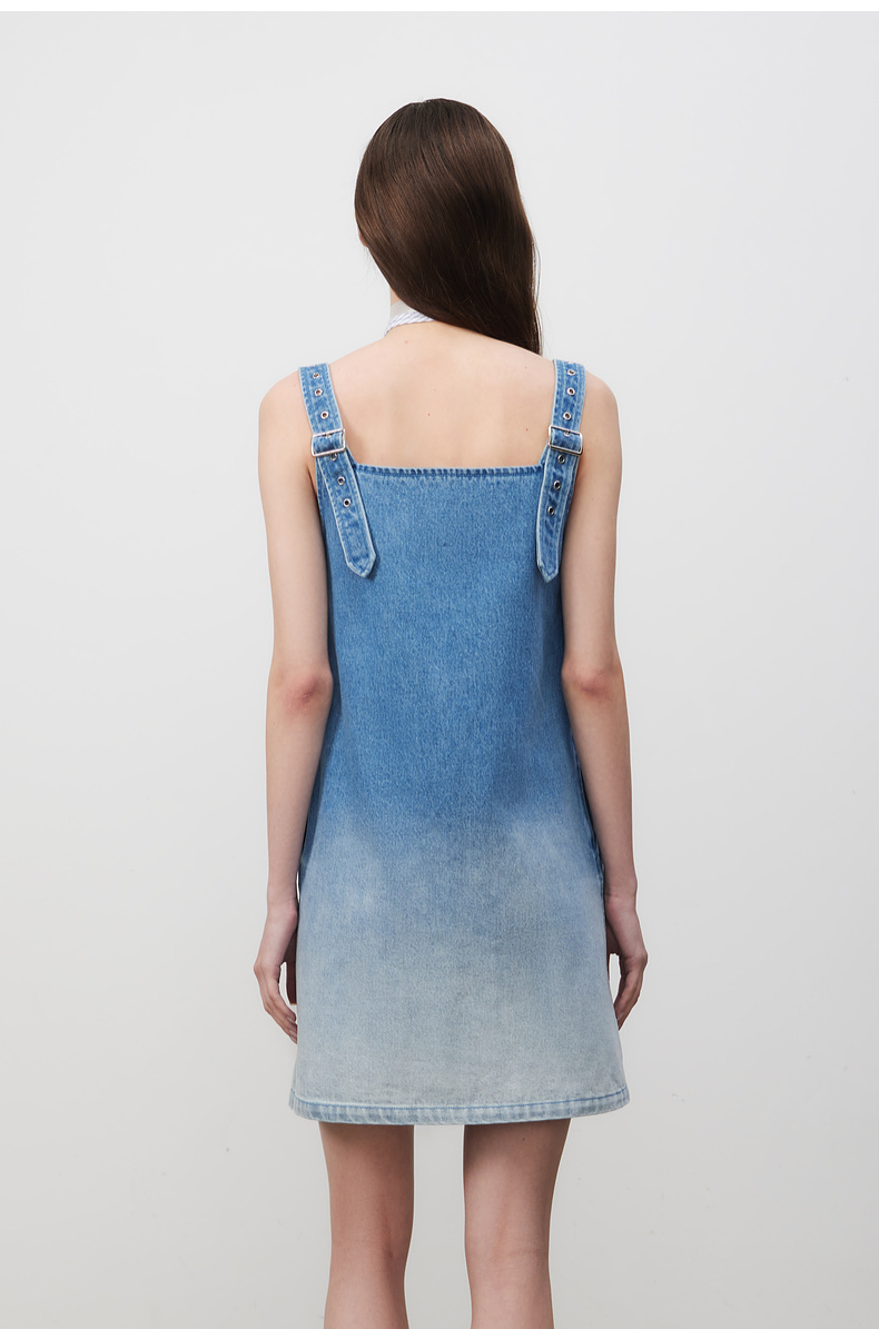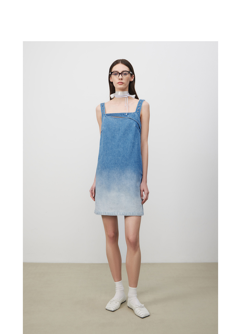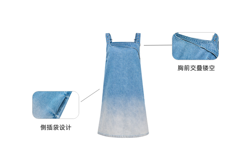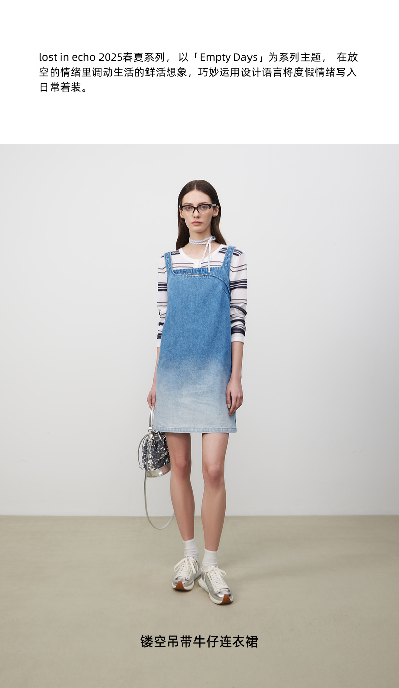 lost in echo2025春夏新款镂空吊带渐变牛仔中长款连衣裙A字裙女